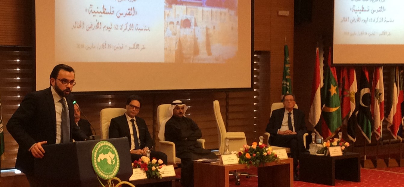 وقال الحربي إن “ألكسو” تعقد هذه الندوة على هامش ‘حياء ذكرى يوم الأرض الذي يوافق الثلاثين من آذار من كل عام، إيمانا منها بأن القضية الفلسطينية هي أم القضايا العربية، وبهدف نصرة مدينة القدس عاصمة للدولة الفلسطينية وإعادة الاعتبار للقضية وللشعب الفلسطيني مع كل ما تتعرض له من عمليات تهويد وطمس لتراثه الثقافي إلى واجهة الاهتمام العربي.
