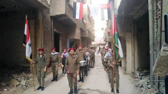 دمشق / أحياء للذكرى ال٥٥ لانطلاقة جبهة النضال الشعبي الفلسطيني أقام اتحاد شباب النضال الشعبي الفلسطيني وبحضور قيادة الساحة السورية حفلا فنيا احيته فرق للدبكة الشعبية والفلكلور الفلسطيني .منها فرقة اتحاد شباب النضال في سورية والتي تضمنت زهرات واشبال شاركوا بتقديم قصائد شعرية وطنية.