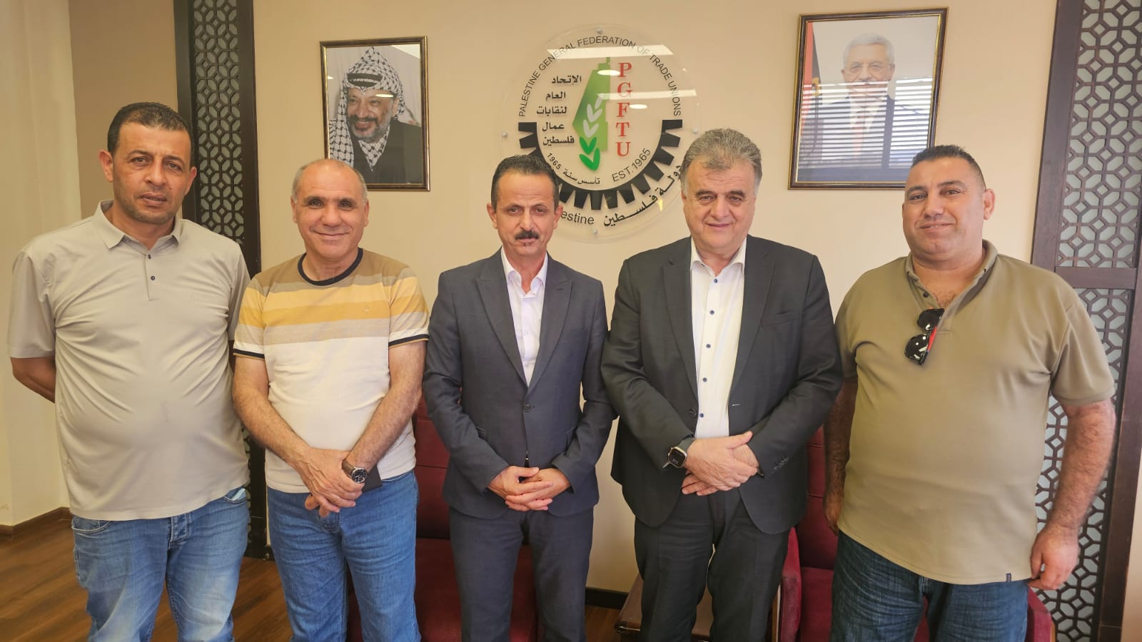 وجرى خلال اللقاء بحث ومناقشة أوضاع الطبقة العاملة الفلسطينية، في ظل الظروف الصعبة التي تواجهها نتيجة ارتفاع معدلات البطالة وإجراءات الاحتلال الإسرائيلي التي تحرم العمال الفلسطينيين من حقهم في العمل الكريم.