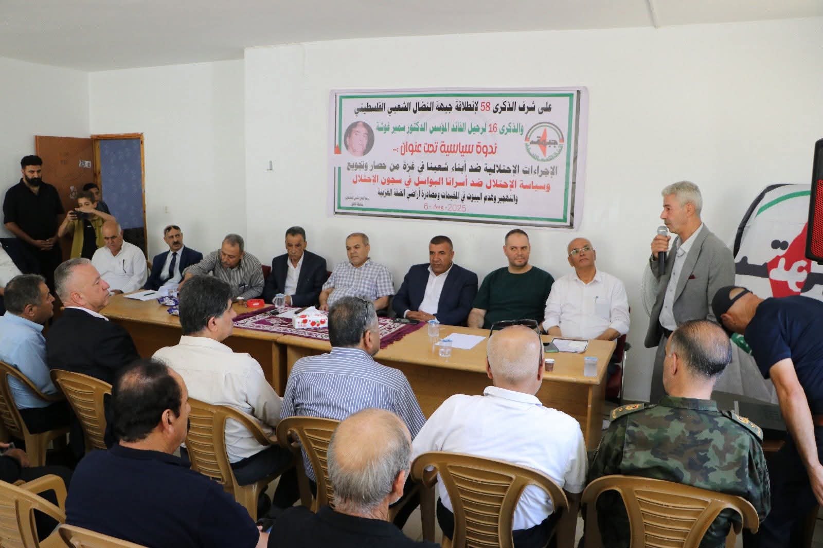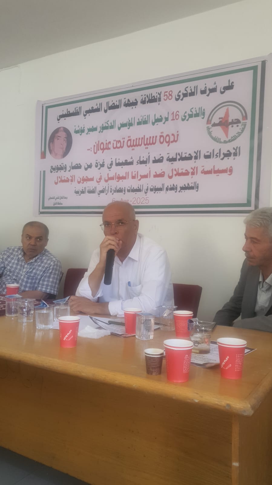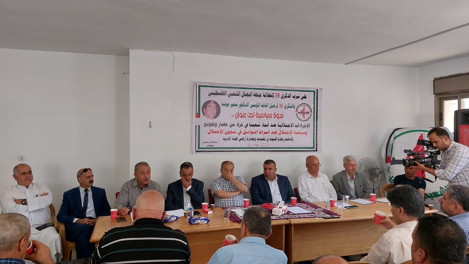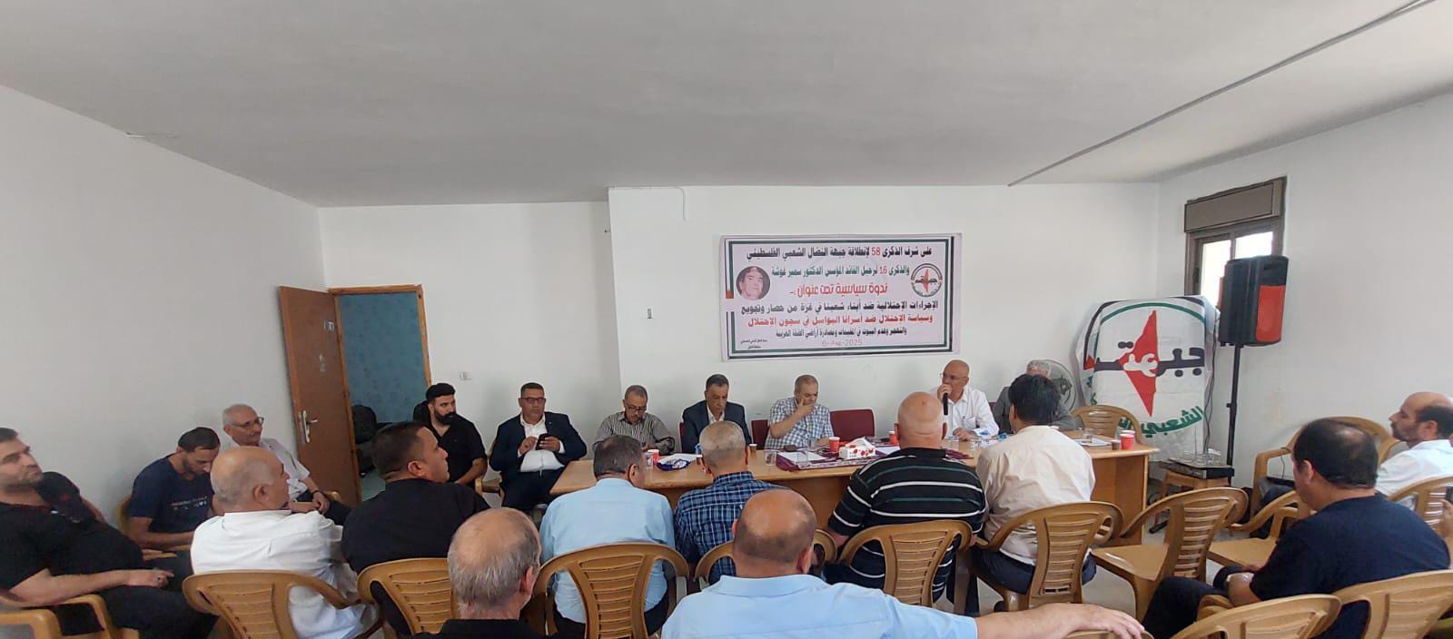 هذا وأثنى المتحدثون على دور جبهة النضال الشعبي الفلسطيني كمكون رئيس من مكونات منظمة التحرير الفلسطينية، واستذكروا مسيرة الأمين العام الراحل د.غوشة الذي يمثل مرحلة نضالية متقدمة وقائدا وحدويا.