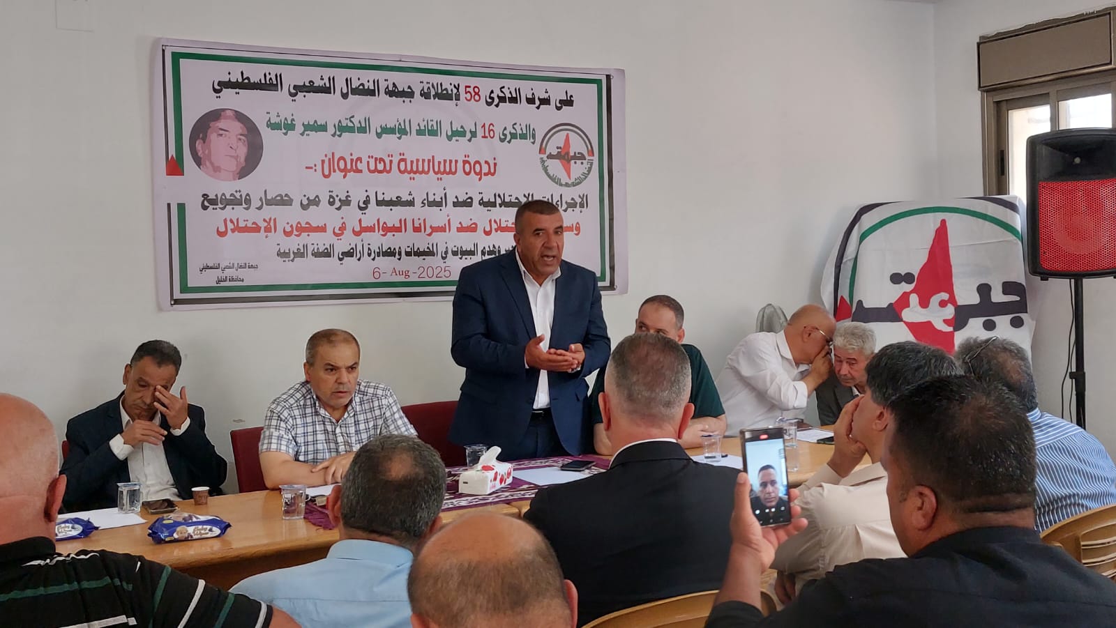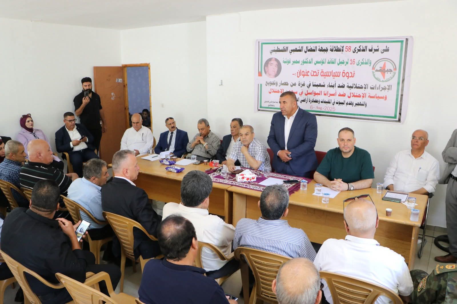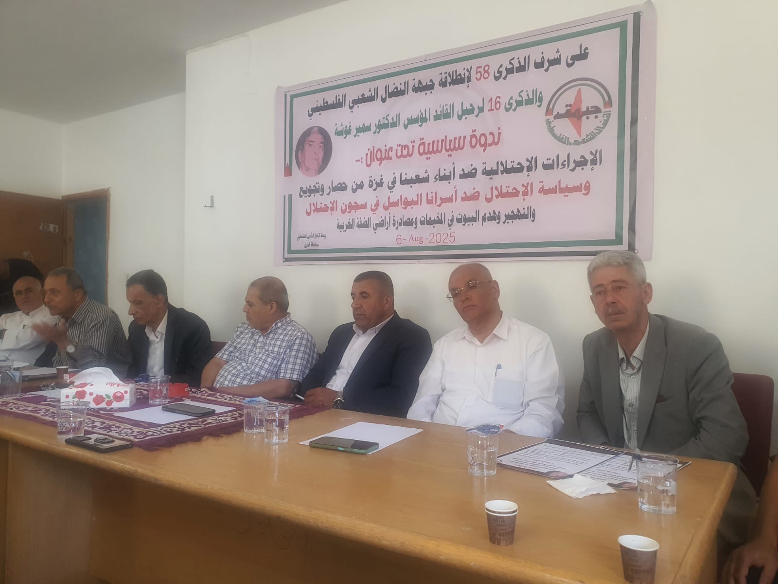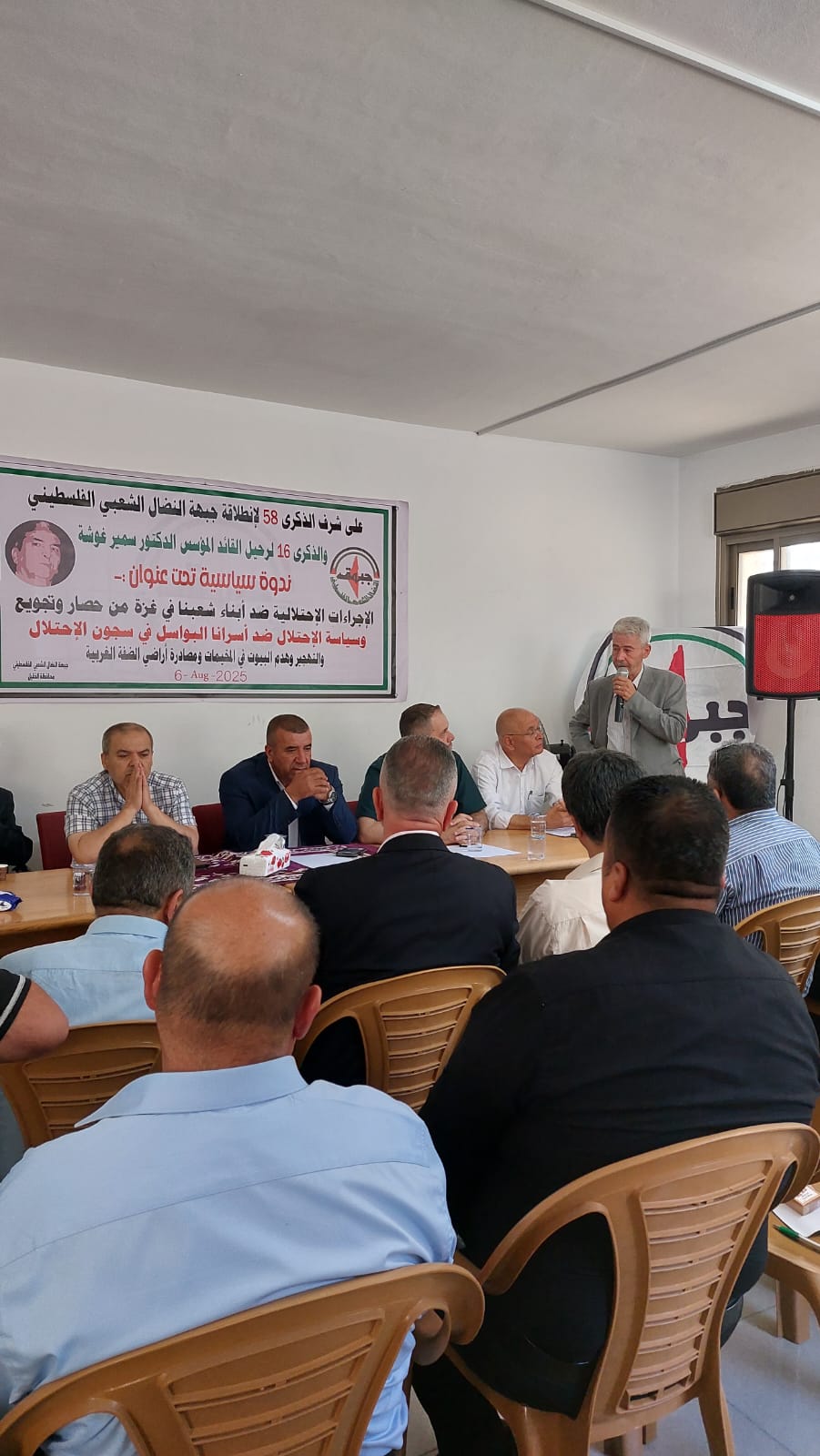 هذا وأثنى المتحدثون على دور جبهة النضال الشعبي الفلسطيني كمكون رئيس من مكونات منظمة التحرير الفلسطينية، واستذكروا مسيرة الأمين العام الراحل د.غوشة الذي يمثل مرحلة نضالية متقدمة وقائدا وحدويا.