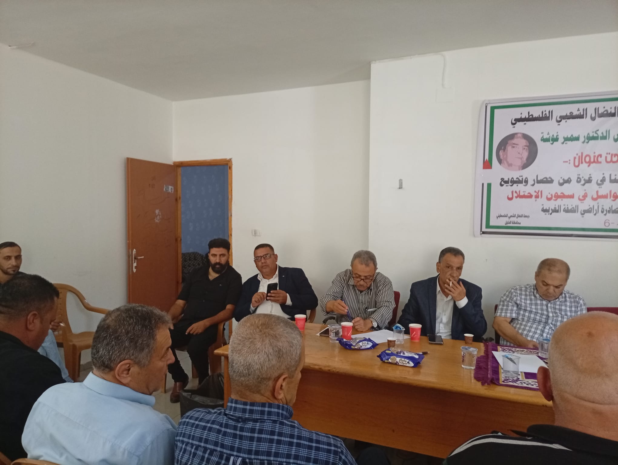 وكان قد رحب عضو اللجنة المركزية للجبهة سكرتير فرع الخليل محمد الشلالدة بالحضور من كافة الفصائل وممثلي الغرفة التجارية وملتقى رجال الأعمال،و التوجيه السياسي ،وقادة الاجهزة الامنية، والاتحادات النقابية، وعضوي المكتب السياسي للجبهة حكم طالب ولؤي الفاخوري، وأعضاء قيادة فرع الخليل .