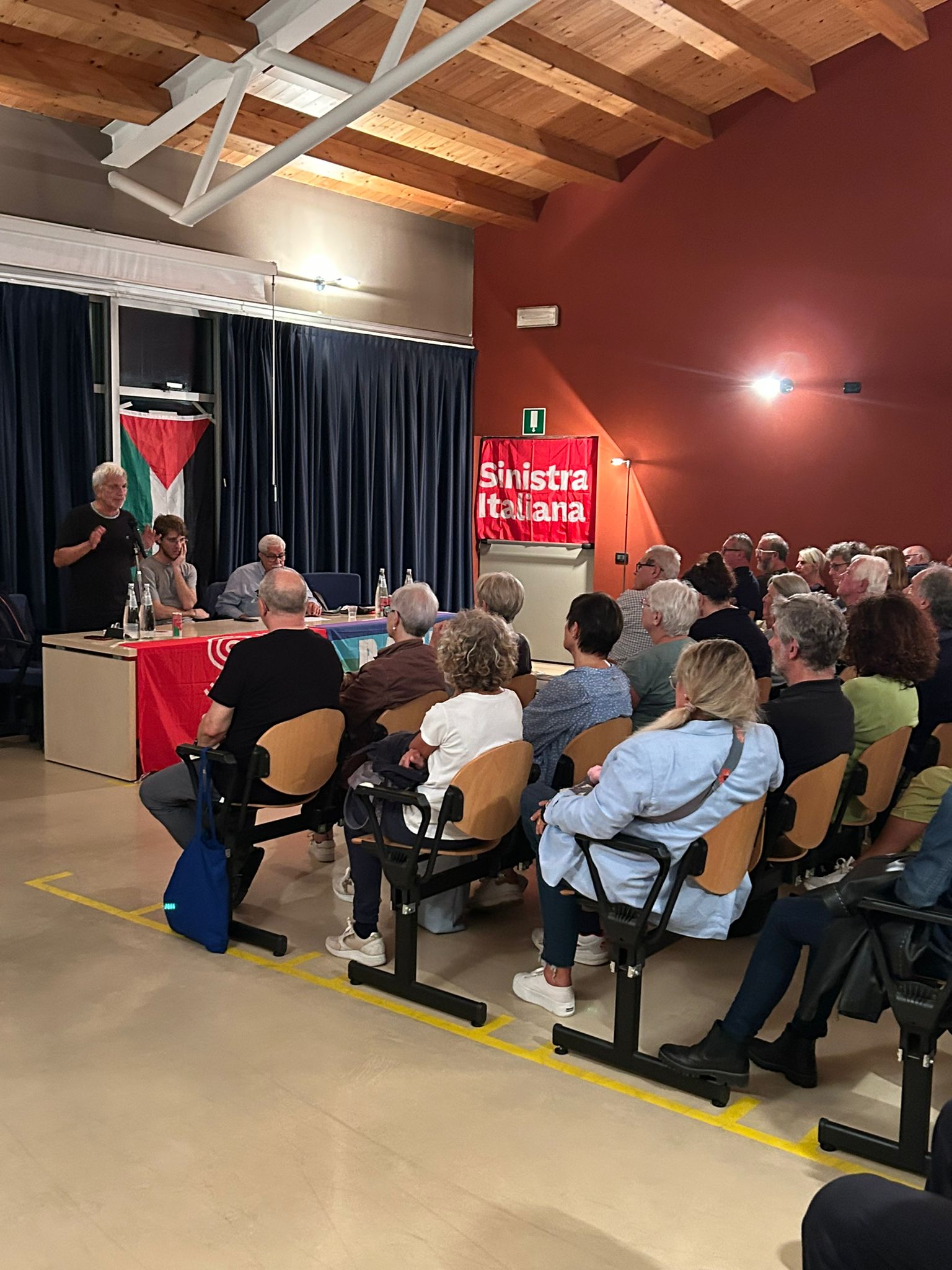 وفي نهاية كلمتة التي لقيت ترحيب وتصفيقا حادا من قبل الجمهور شكر الحزب وتحالف حركة الخضر واليسار الايطالي لتنظيمهم هذه المبادرة والتي تعتبر نقطة انطلاقة للقيام في الكثير من الفعاليات والنشاطات التضامنية مع فلسطين .