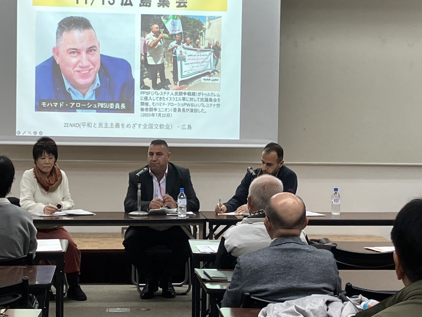 وشهدت الندوة حضوراً لافتاً تقدّمه الرفيق ساتو كازويوشي، رئيس الحركة الاشتراكية الديمقراطية (MDS)، بمشاركة المترجمين من جامعة هيروشيما الدكتور تانامي آوئي والدكتور زياد الفراج، بمشاركة عدد واسع من أنصار الشعب الفلسطيني من أطياف متعددة.