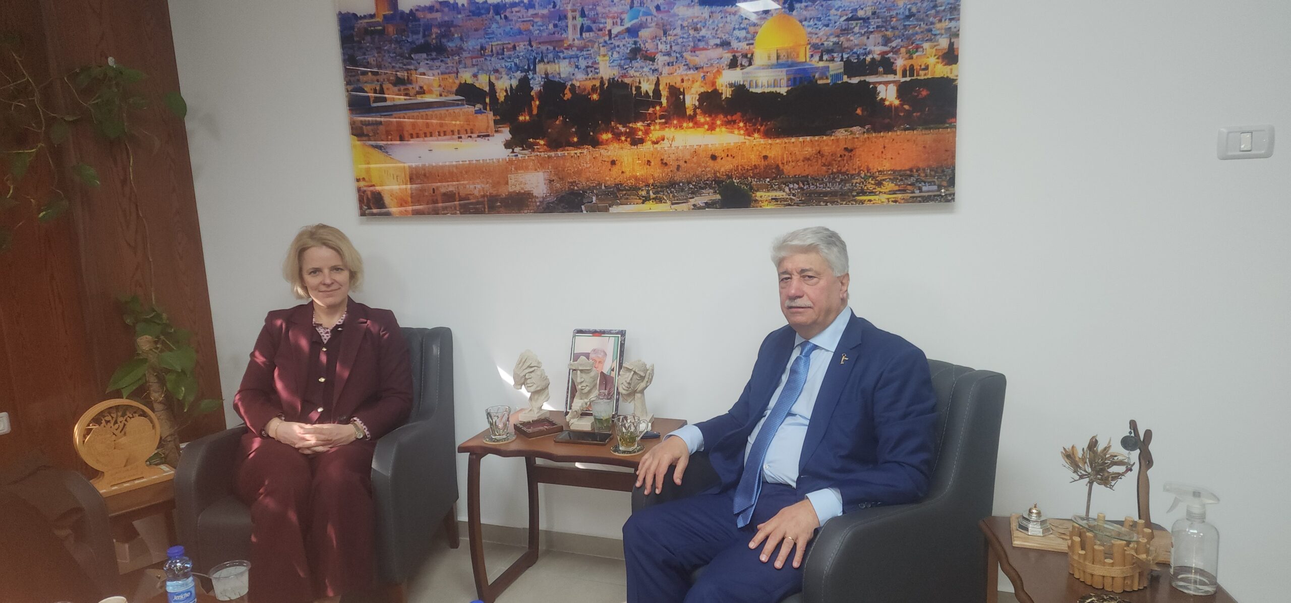 رام الله / اطلع عضو اللجنة التنفيذية لمنظمة التحرير الفلسطينية الأمين العام لجبهة النضال الشعبي الفلسطيني د. احمد مجدلاني ممثلة سويسرا لدى دولة فلسطين آن- ليز هينين، خلال لقائها اليوم الثلاثاء في مكتبه بمدينة رام الله، بحضور اعضاء المكتب السياسي للجبهة رزق النمورة وتغريد كشك وحسني شيلو، على الوضع السياسي العام في ظل غياب الأفق السياسي وانتهاكات الاحتلال الإسرائيلي المتواصلة بحق شعبنا وأرضه.