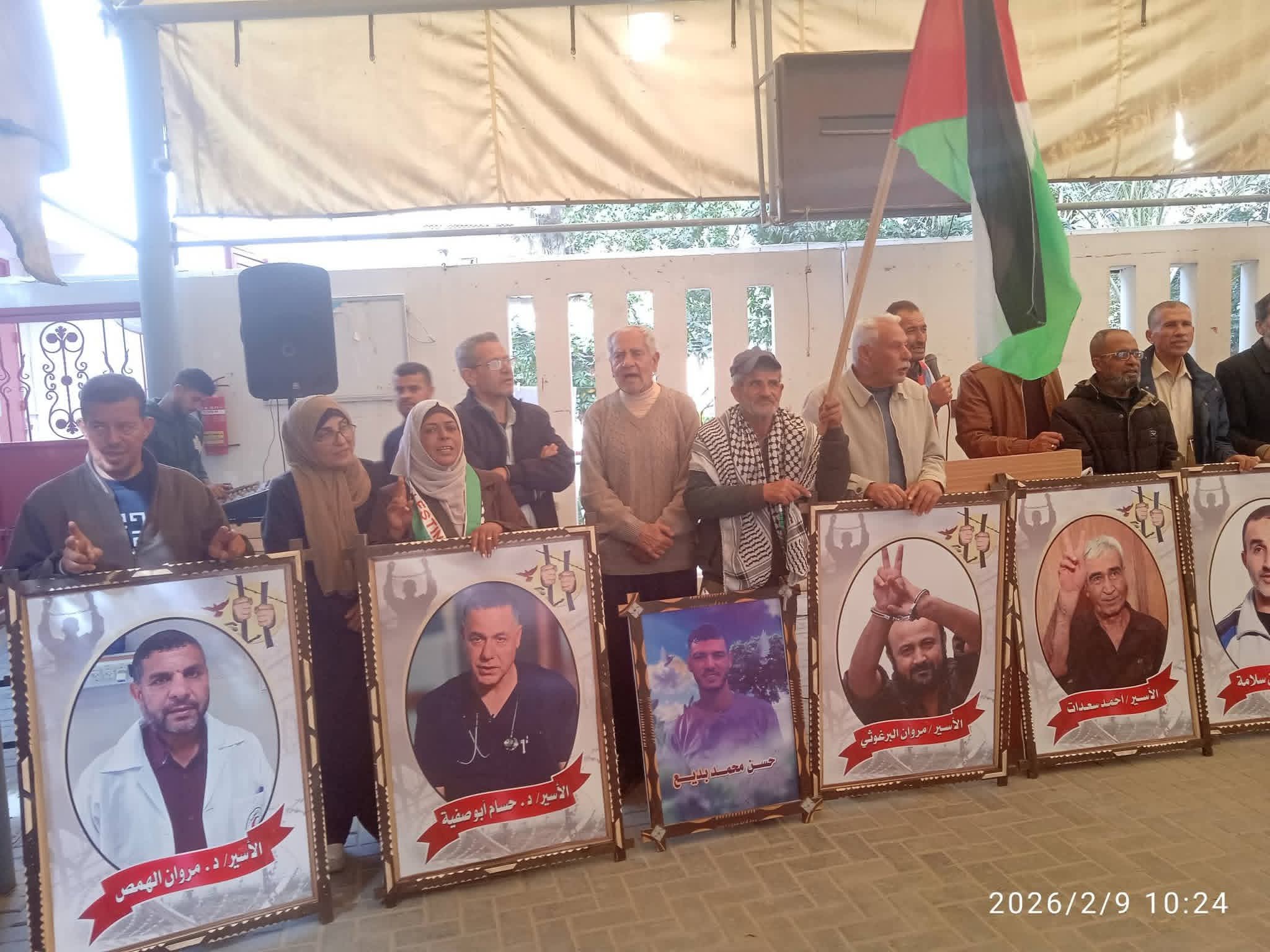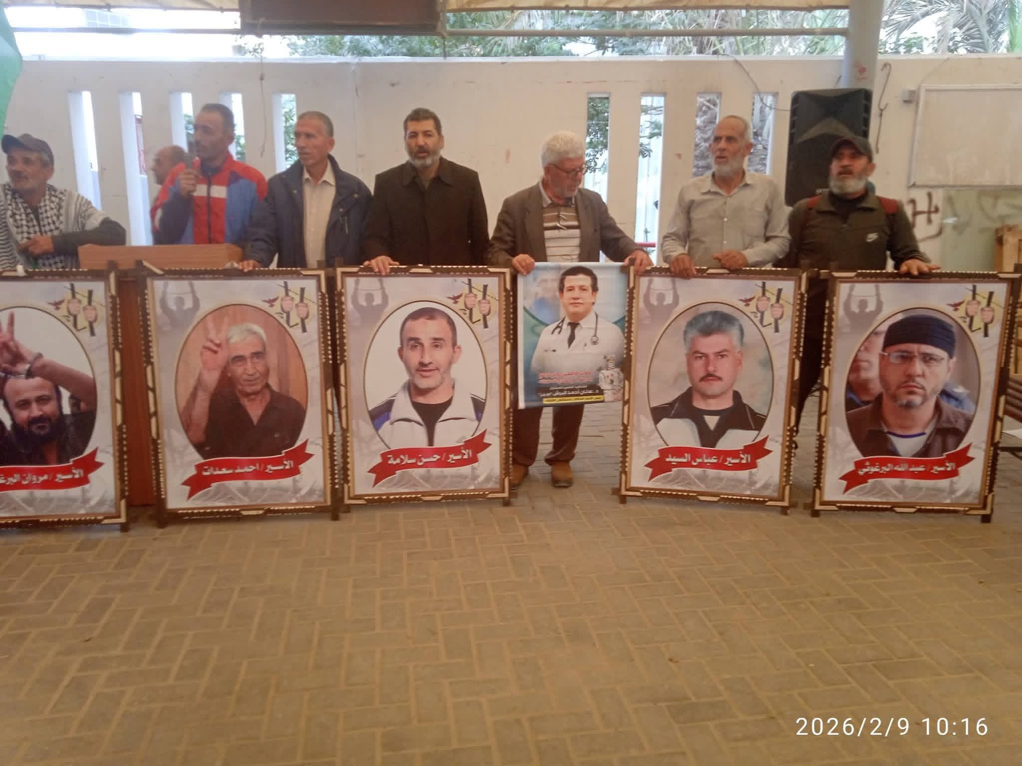 حاملين صور الأسرى فى سجون الاحتلال، مطالبين بالافراج عنهم والسماح لهم بزيارة أبناءهم داخل السجون والمعتقلات وان الأسرى مناضلين من اجل الحرية ضحوا بأغلى مايملك الانسان حريته من اجل ان يعيش شعبنا الفلسطيني بحرية وكرامة كباقي شعوب العالم فى دولة مستقلة وعاصمتها القدس.