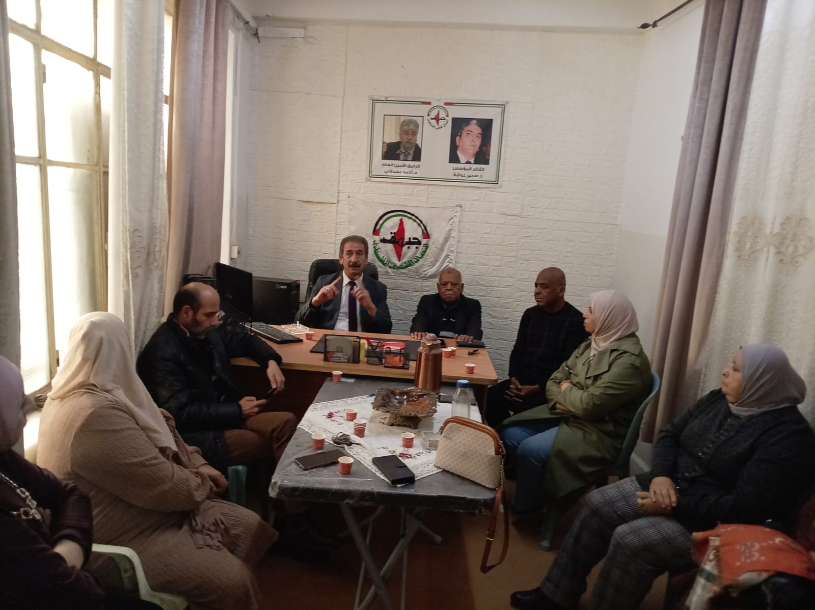 هذا وناقش الاجتماع اخر المستجدات التنظيمية والاوضاع النقابية والحرص على الوحدة الوطنية في اطار منظمة التحرير الفلسطينية الممثل الشرعي والوحيد لشعبنا .