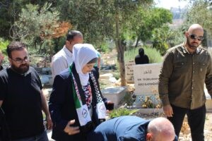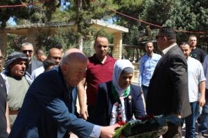 وتقدم نائب الأمين العام للجبهة عوني أبو غوش وفداً كبيراً ضم أعضاء المكتب السياسي واللجنة المركزية وكوادر وأنصار الجبهة، زار بهذه المناسبة ايضا ضريح عضو المكتب السياسي د. خالد القاسم ، واضرحة قادة الجبهة ابراهيم الفتياني “ابو النايف” ومحمد العاصي ويوسف وراد وغيرهم في مقابر الشهداء والبيرة الجديدة وبيتونيا في تقليد سنوي.