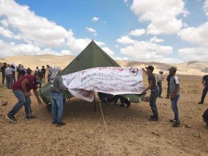 و أكد المعتصمون على صمودهم بأرضهم حتى إسقاط صفقة القرن و مخطط الضم و إقامة الدولة الفلسطينية المستقلة و عاصمتها القدس