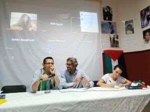 وشهدت الندوة مداخلة عبر الفيديو كونفرنس من الإعلامية نجوان سمري مراسلة قناة الجزيرة في فلسطين وصديقة شيرين أبو عاقلة، و رانيا زبانة معدّة في قناة الجزيرة في مكتب فلسطين وصديقة شيرين أبو عاقلة، وعمر نزال كاتب صحفي و إعلامي منذ عام 1985، وعضو في الأمانة العامة لنقابة الصحفيين الفلسطينيين منذ 2010 ومدير مكتب كلاكيت الإعلامي،وعمر البرغوثي باحث وناشط فلسطيني، وهو عضو مؤسس للحملة الفلسطينية الخاصة بالمقاطعة الأكاديمية والثقافية لإسرائيل (PACBI) وحركة سحب الاستثمارات وفرض العقوبات ضد إسرائيل BDS، ونال جائزة غاندي للسلام لعام 2017، والصحفية لمى غوشة صحافية فلسطينية وعضو لجنة اتحاد المرأة الفلسطينية، وعروبة عثمان باحثى فلسطينية.