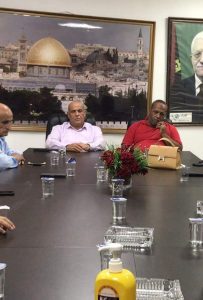 اريحا / بمشاركة النضال الشعبي قام وفد من فصائل منظمة التحرير الفلسطينية ونادي الأسير في محافظة أريحا والاغوار بزيارة إلى بلدية اريحا وكان في استقبال الوفد رئيس بلدية اريحا عبد الكريم سدر ونائبه السيد فتحي براهمه وعدد من أعضاء المجلس البلدي، صائب نظيف عضو المجلس الثوري لحركة فتح و ا حسن درويش سكرتير الجبهة باريحا منسق فصائل منظمة التحرير.