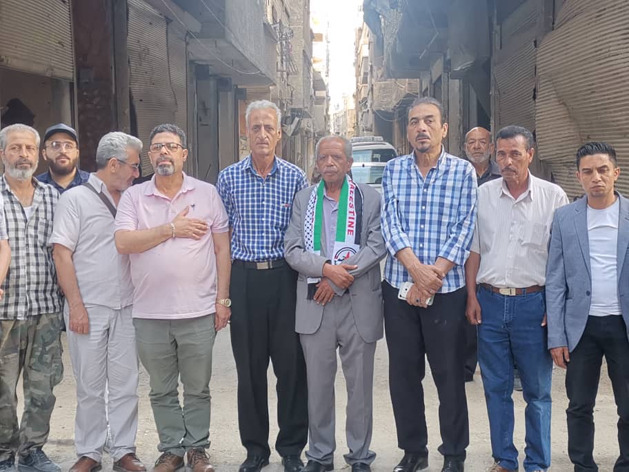 دمشق / نظمت جبهة النضال الشعبي الفلسطيني الساحة السورية وبدعوة من فصائل منظمة التحرير وقفة تضامنية احياء للذكرى ال76 لنكبة فلسطين ودعما لصمود أهلنا ومقاومته في قطاع غزة المحاصر وتنديداً بجرائم الابادة التي يرتكبها الاحتلال الصهيوني المجرم بحق شعبنا المقاوم ,امام مقر قيادة اقليم سورية بحضور قاسم معتوق مسؤول الساحة السورية واعضاء اللجنة المركزية وعدد من كوادر الجبهة وممثلين عن فصائل منظمة التحرير الفلسطينية والأحزاب الوطنية وجمع غفير من المخيمات والتجمعات الفلسطينية في سورية.