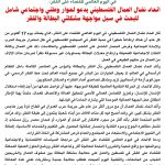وقال الاتحاد: إن الحركة النقابية العالمية للطبقة الموجهة، عليها أن تواصل نضالها من أجل إلغاء استغلال الإنسان للإنسان، وتعزيز التضامن العمالي الأممي لتحقيق العدالة والانصاف للعمال، مثمناً بهذا الإطار انطلاق عمل الجبهة العمالية الموحدة التي يشارك اتحادنا في قيادتها.
