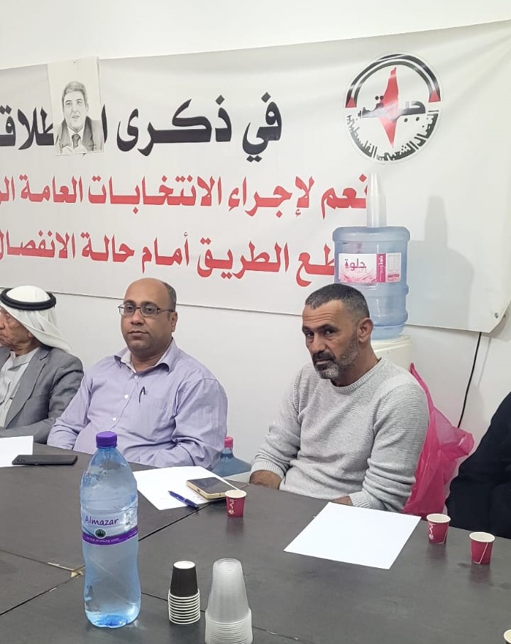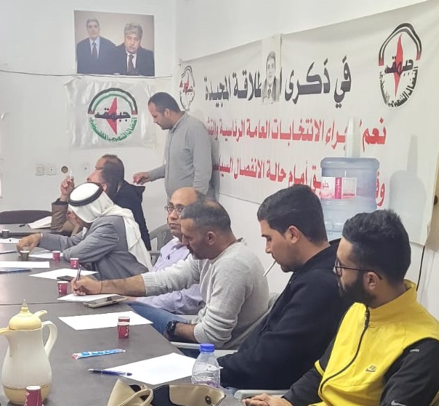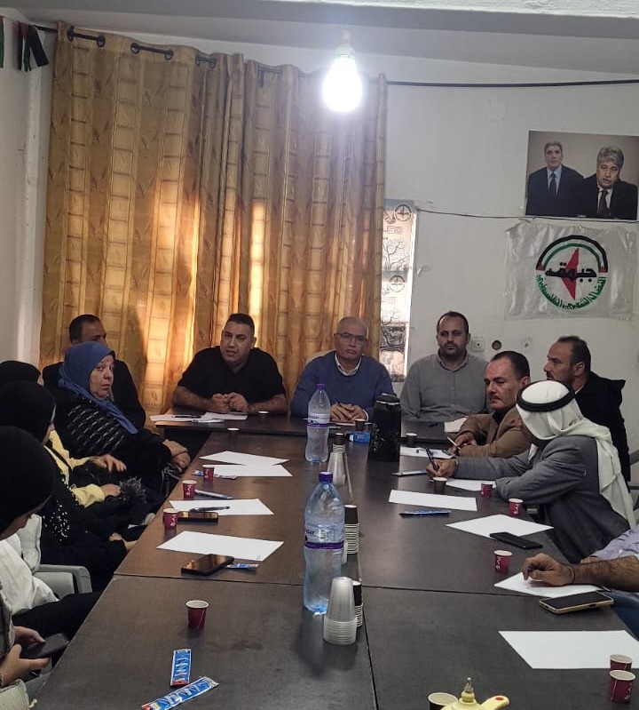 وأكد حكم طالب عضو المكتب السياسي للجبهة وسكرتيرها بالضفة الغربية على موقف الجبهة من كافة القضايا، وقدم شرحاً وافياً حول آليات صنع القرار في الهيئات التنظيمية باعتبارها الركيزة الأساسية في تحديد الأهداف الوطنية ورسم البرنامج النضالي، وتحدث حول كيفية اشتقاق المواقف من كافة الأحداث بما ينسجم مع منطلقات وأهداف الجبهة.