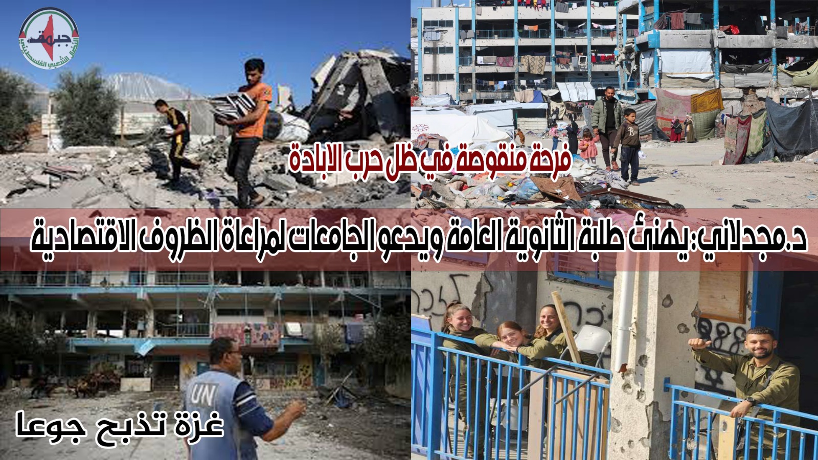 فرحة منقوصة في ظل حرب الابادة د.مجدلاني: يهنىء طلبة الثانوية العامة ويدعو الجامعات لمراعاة الظروف الاقتصادية