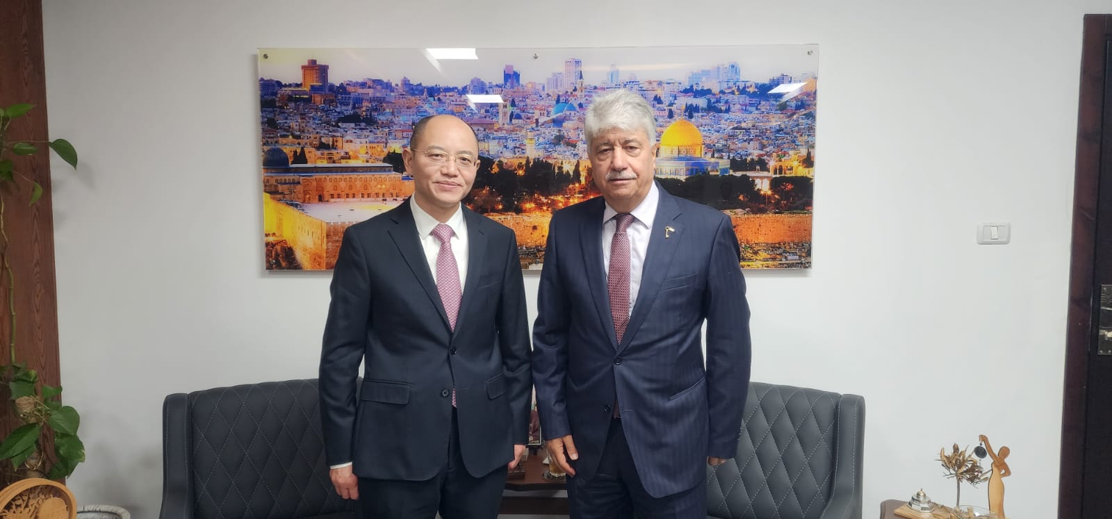 ومن جانبه، أكد السفير الصيني على ثبات موقف بلاده الداعم تاريخيا للحق الفلسطيني وللقضية الفلسطينية العادلة، وأن العلاقة التي تربط بين جمهورية الصين ودولة فلسطين تعود الى عقود من الزمن كانت خلالها تلك العلاقات وما زالت في تطور مستمر. وجدد دعم الصين الشعبية للحقوق المشروعة للشعب الفلسطيني بما يضمن إقامة الدولة الفلسطينية المستقلة وتحقيق السلام والتنمية.