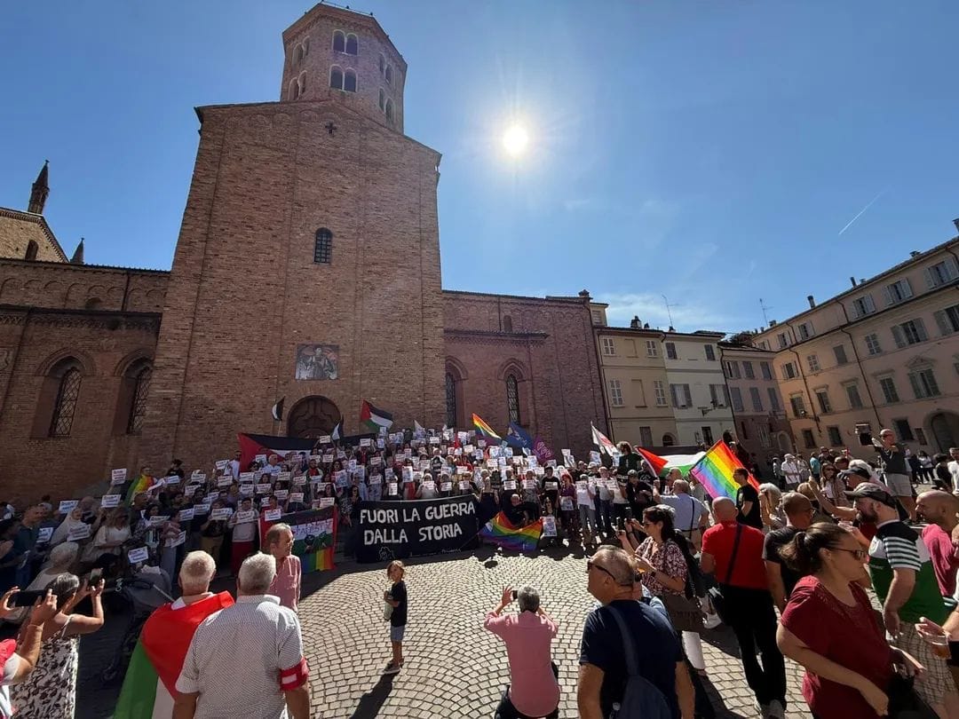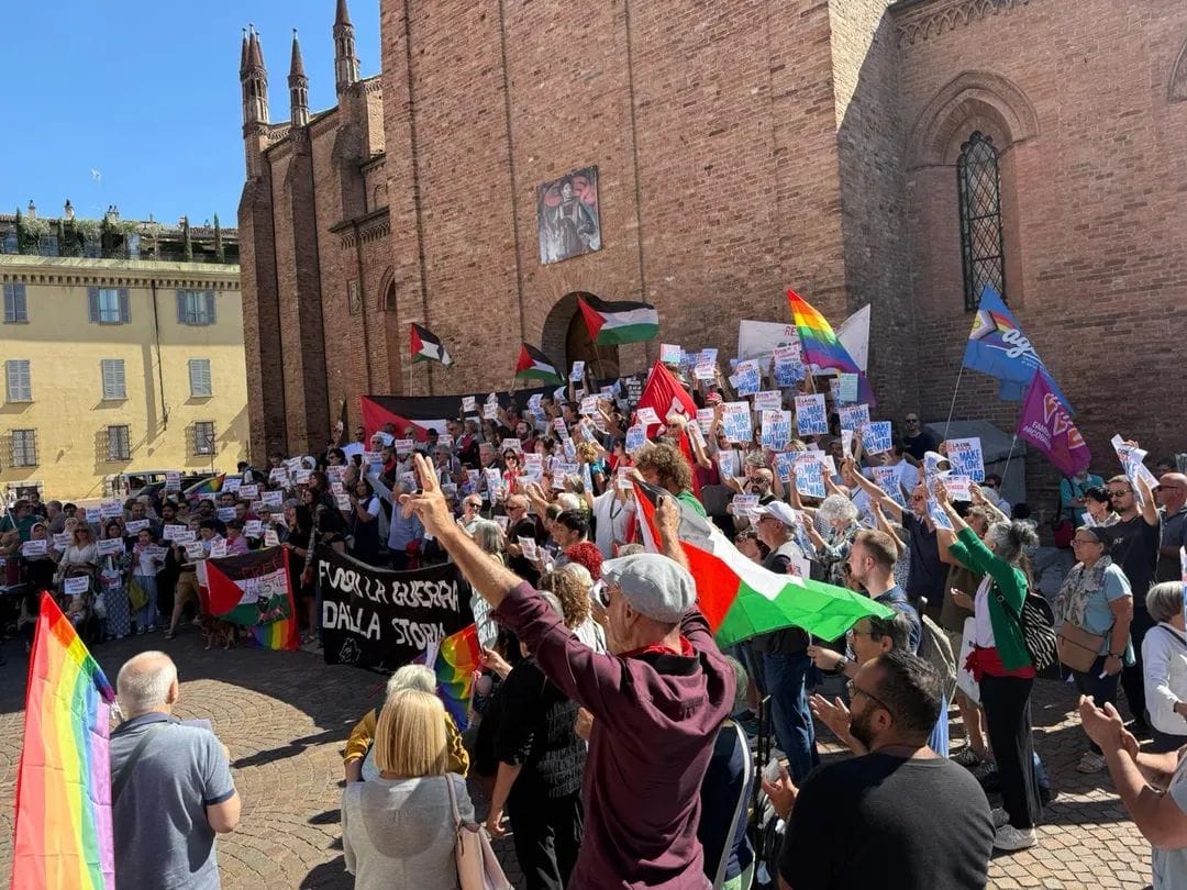 وتابع في محافظة فورلي وتثيزينا كان الموعد الساعة العاشرة صباحا يوم أمس السبت في أمام بلدية تثيزيناتيكو الواقعة على البحر الادرياتيكي حيث انطلقت المسيرة الحاشدة بآلاف المواطنين في اعلام فلسطين متوجهين إلى الميناء لوداع ودعم والوقوف مع اسطول الصمود ولارسال رسالتين أساسييتين الاولى هي للمشاركين في هذة الحملة لكسر الحصار لنقل لهم اننا معكم وانتم لست وحدكم بل كل الشعب الايطالي معكم ومع فلسطين اما الرسالة الثانية فهي لدولة الاحتلال لنقل لها اننا متضامنيين وداعمين مع المشاركين من مواطنينا في هذة المسيرة واننا نحن معهم نطالب في وقف آطلاق النار وادخال المساعدات الانسانية والاعتراف بدولة فلسطين . يذكر ان عمال وموظفين الموانئ الايطالية حذروا دولة الاحتلال في انة في حال انقطاع المواصلات والاتصالات مع اسطول الصمود حتى ولو لعشرين دقيقة فقط فسنعطل ونغلق اوروبا بكاملها . كما صرحت المنظمات الطلابية انها تقف خلف اسطول الصمود وانها ستغلق الجامعات الايطالية بكاملها في حاب الاعتداء او قطع الاتصال مع اسطول الصمود المتجة إلى غزة لكسر الحصار.