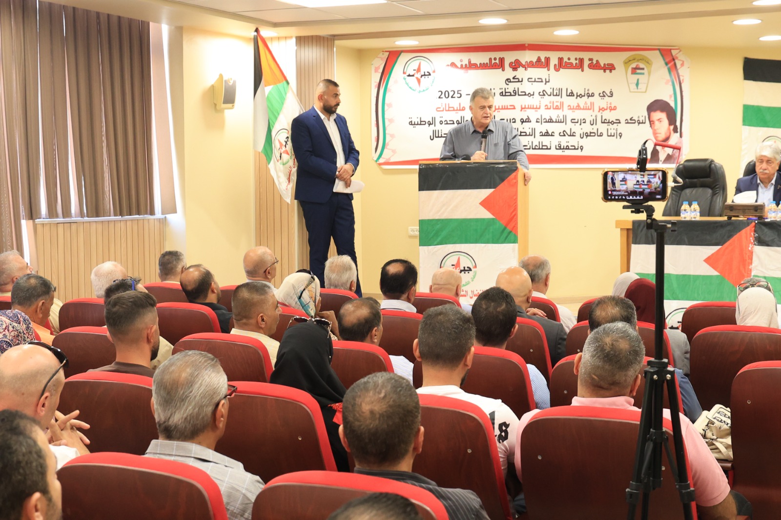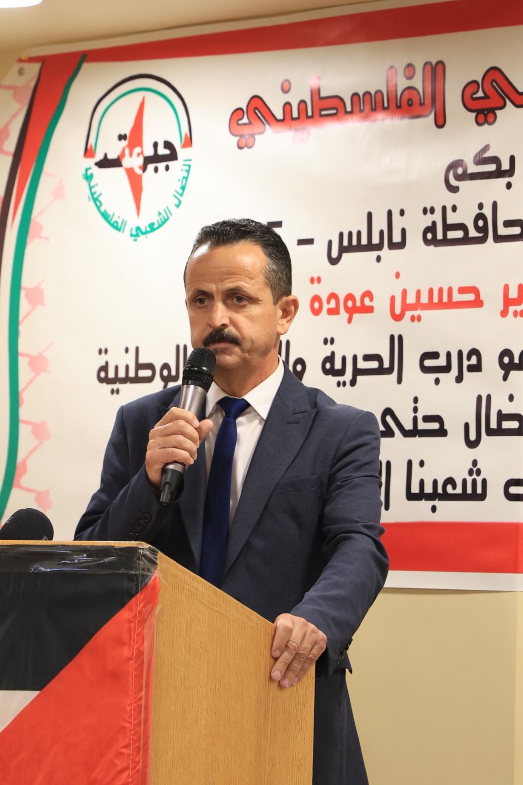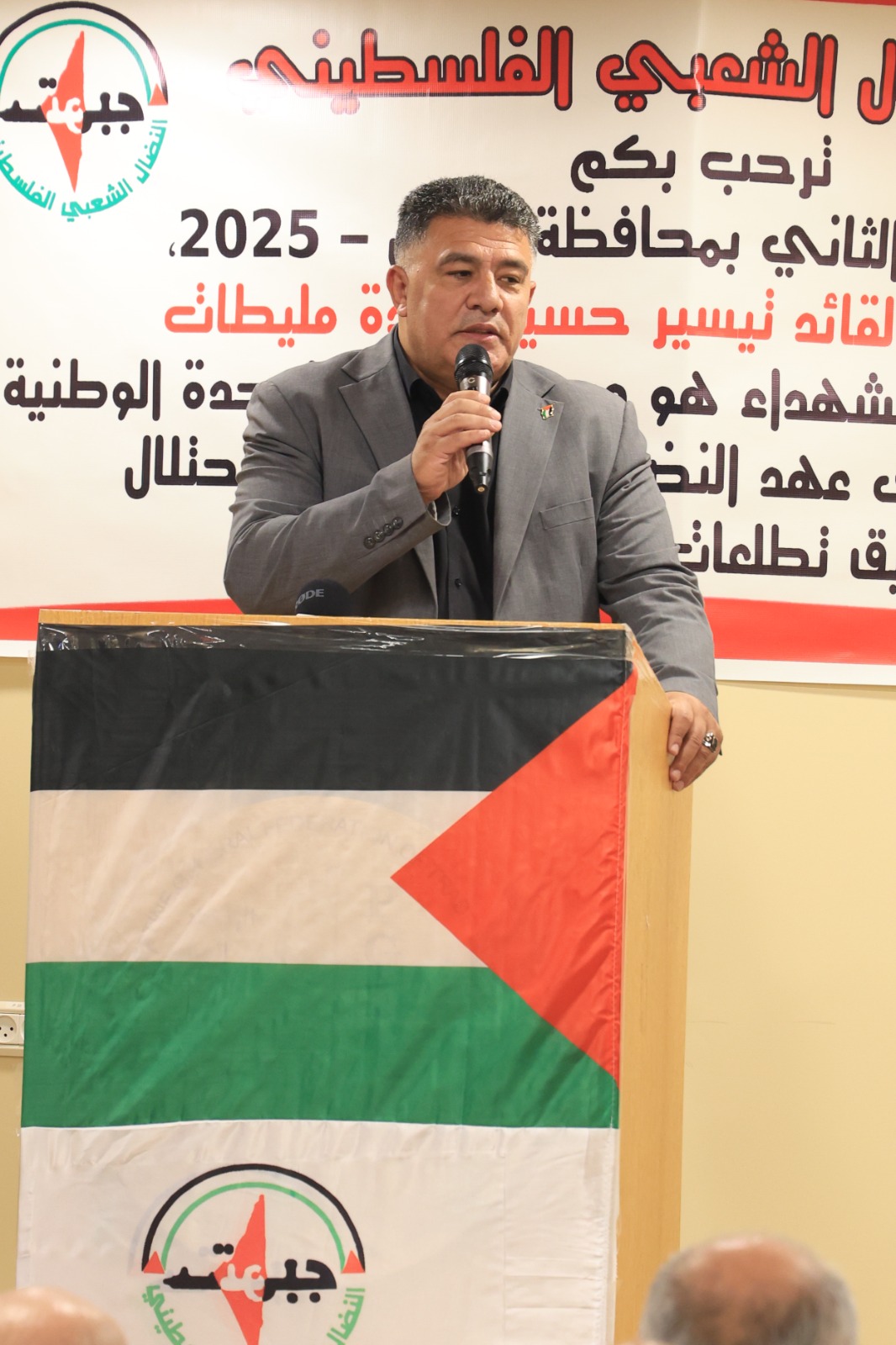 وبكلمته اشاد محافظ نابلس بدور جبهة النضال الشعبي الفلسطيني وانعقاد مؤتمرها باسم الشهيد مليطات تأكيدا ووفاء لدماء الشهداء.