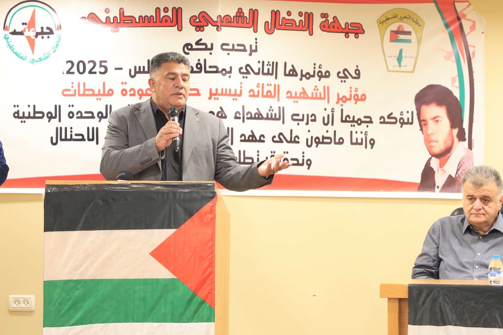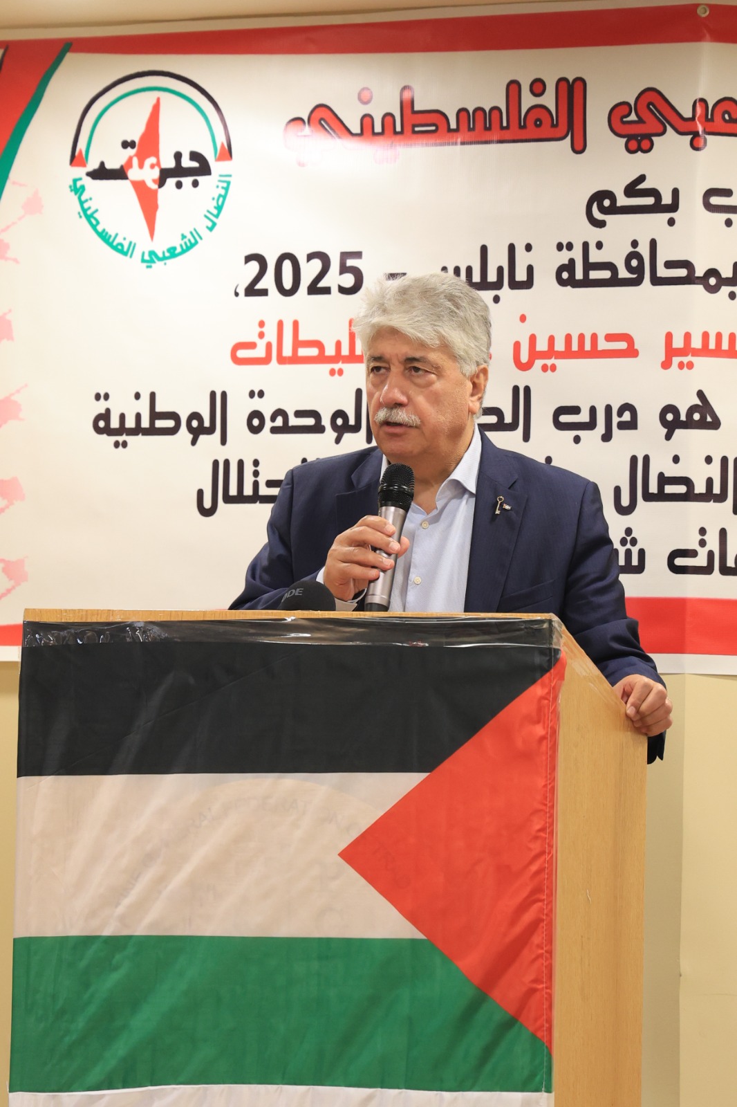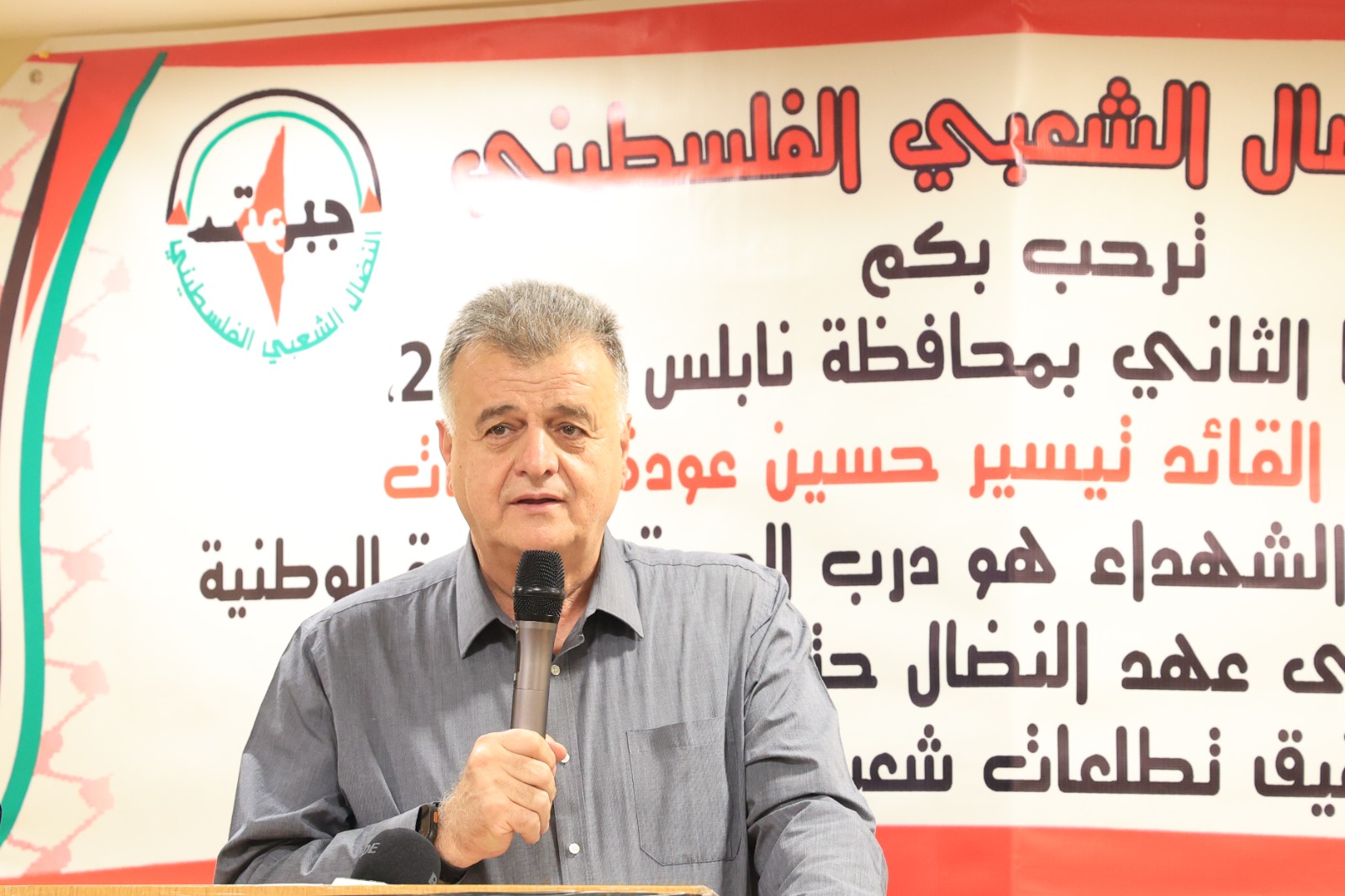وبكلمته اشاد محافظ نابلس بدور جبهة النضال الشعبي الفلسطيني وانعقاد مؤتمرها باسم الشهيد مليطات تأكيدا ووفاء لدماء الشهداء.