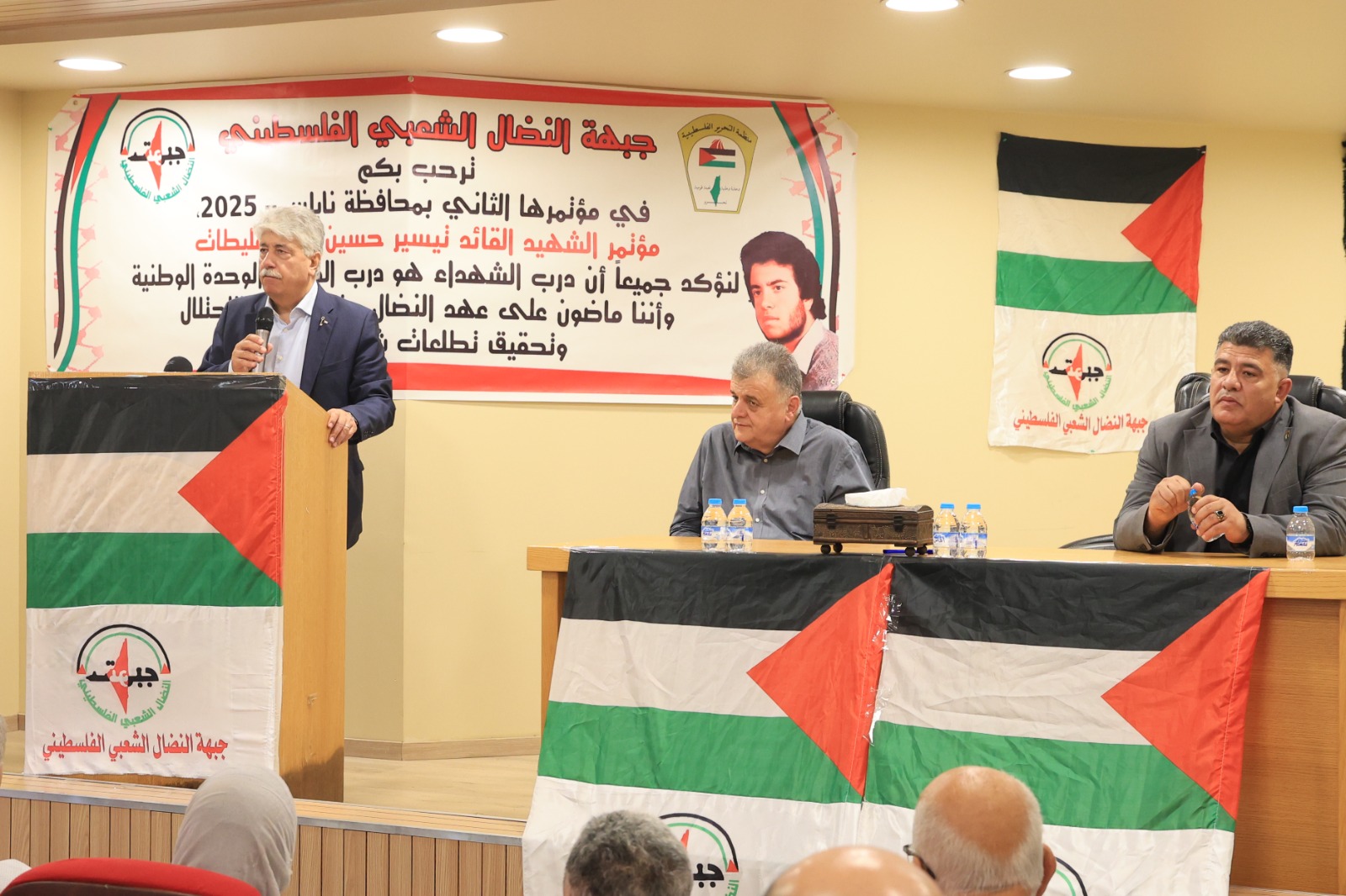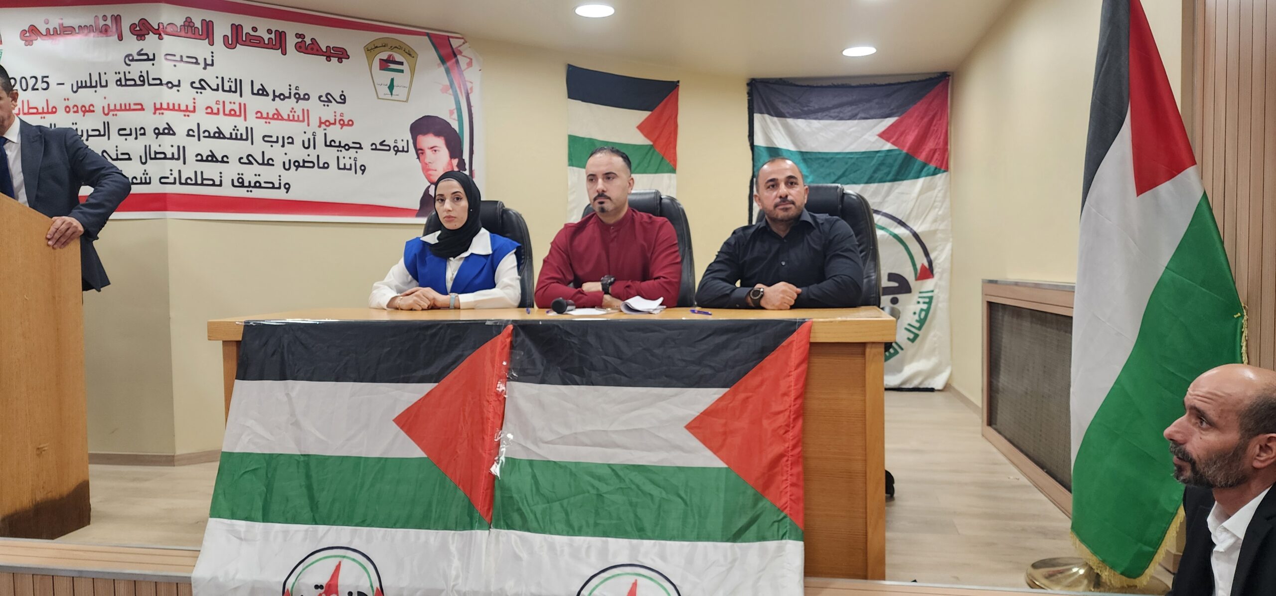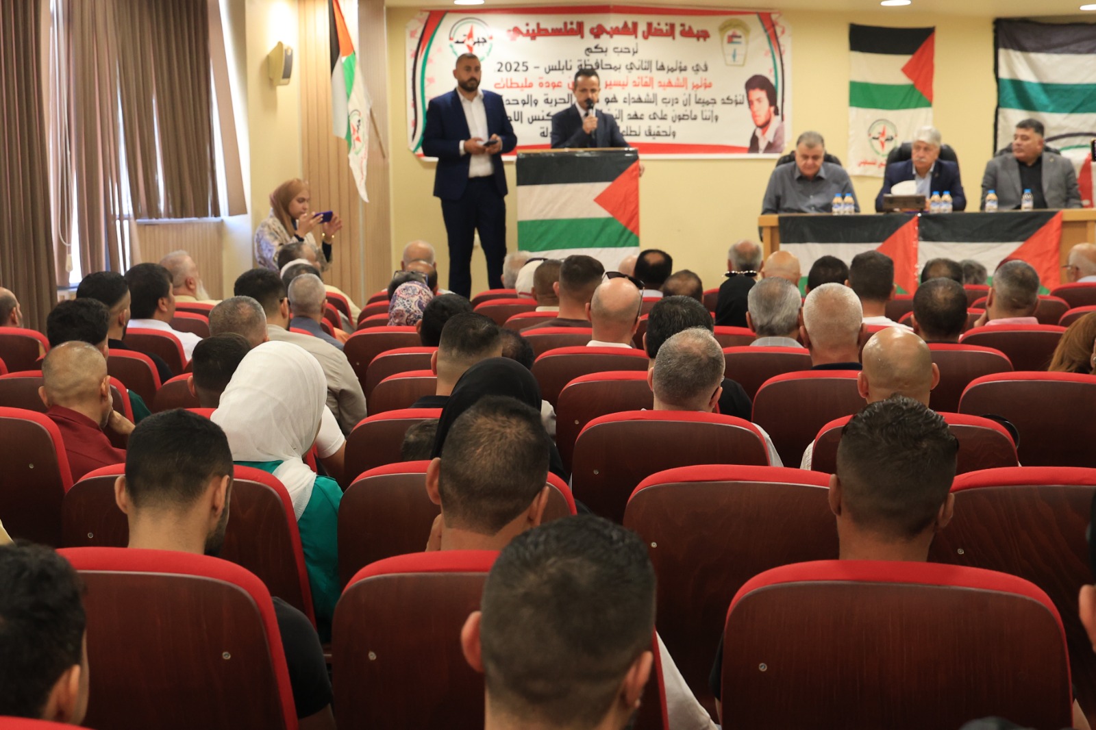 وكان قد افتتح المؤتمر بكلمة ترحيبة من عضو اللجنة المركزية للجبهة مناضل حنني الذي اكد على النهج الديمقراطي وتعزيز الحياة الداخلية الديمقراطية في الجبهة وتعزيز اطرها النقابية والجماهيرية، وتولى عرافة الحفل عضو قيادة الجبهة فرع نابلس سامح صلاحات.