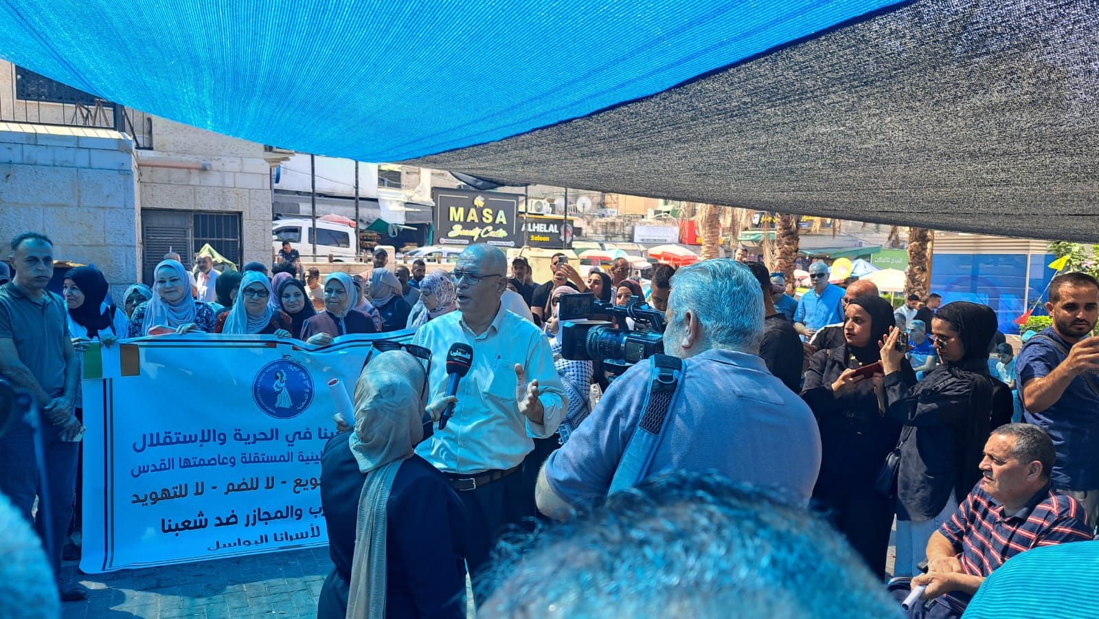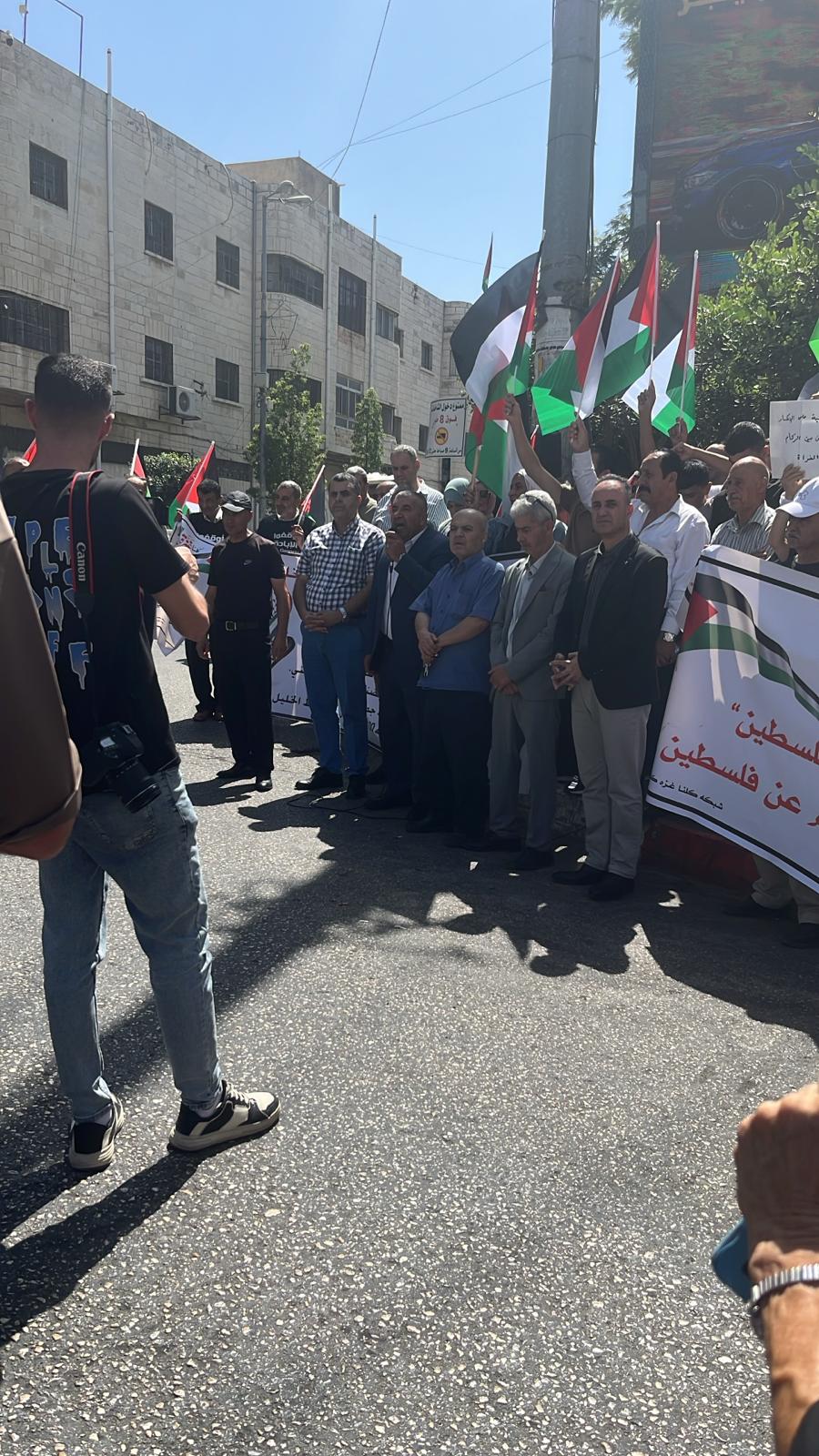 وفي محافظة الخليل أكد المشاركون في الوقفة التي نُظمت عند دوار ابن رشد وسط مدينة الخليل، حق شعبنا في الحرية والاستقلال، ووقوف العالم أجمع بجانب شعبنا، وعدالة قضيته.