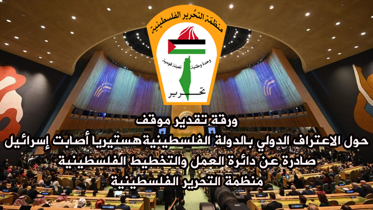 ورقة تقدير موقف حول الاعتراف الدولي بالدولة الفلسطينية… هستيريا أصابت إسرائيل صادرة عن دائرة العمل والتخطيط الفلسطينية منظمة التحرير الفلسطينية