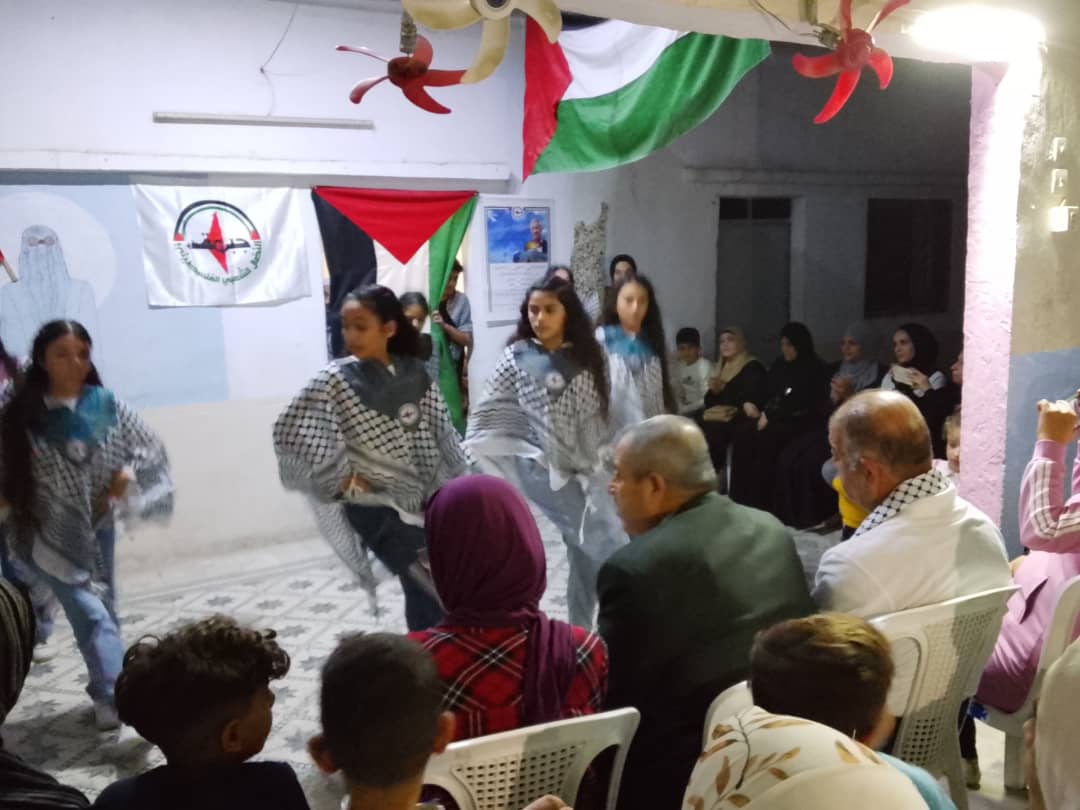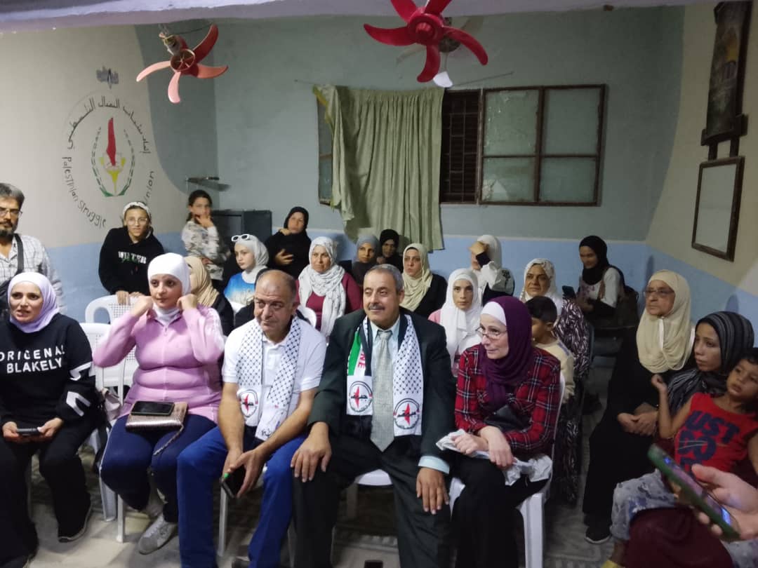 بحضور أعضاء الفرع وسكرتير المنطقة أحمد جوغلف أبوجميل وروان صادق سكرتيرة المرأة ومدرب الفرقة ومخرج المسرحيات محمد صادق مثلت.وممثلين عن الفصائل الفلسطينية في اللاذقية وحشد جماهيري من الأهالي والمجتمع المحلي.