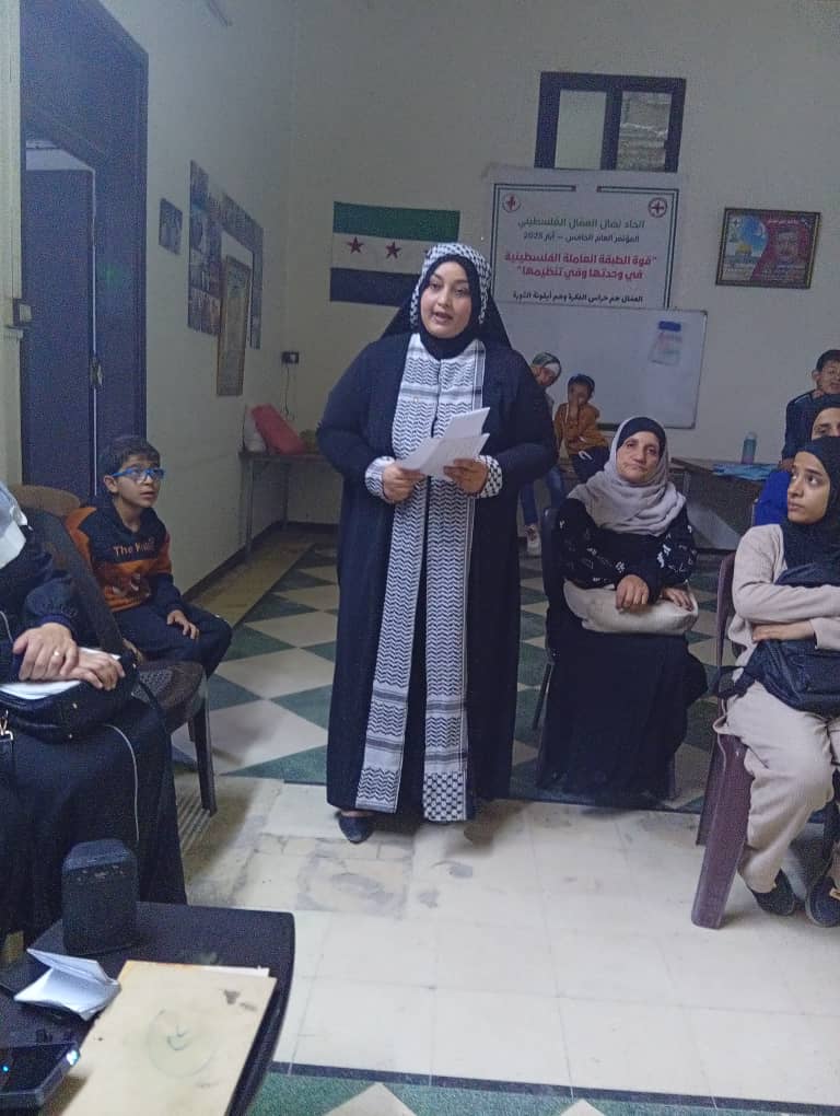 بحضور عضو المكتب السياسي قاسم معتوق مسؤول الساحة السورية وعضو اللجنة المركزية احمد معتوق سكرتير فرع اليرموك ورنا عوض مسؤولة المرأة في الساحة السورية وأبو القاسم عضو اللجنة المناهضة للدفاع عن م ت ف وأعضاء قيادة فرع اليرموك وحضور جماهيري كبير في إقليم سوريا بمخيم اليرموك.