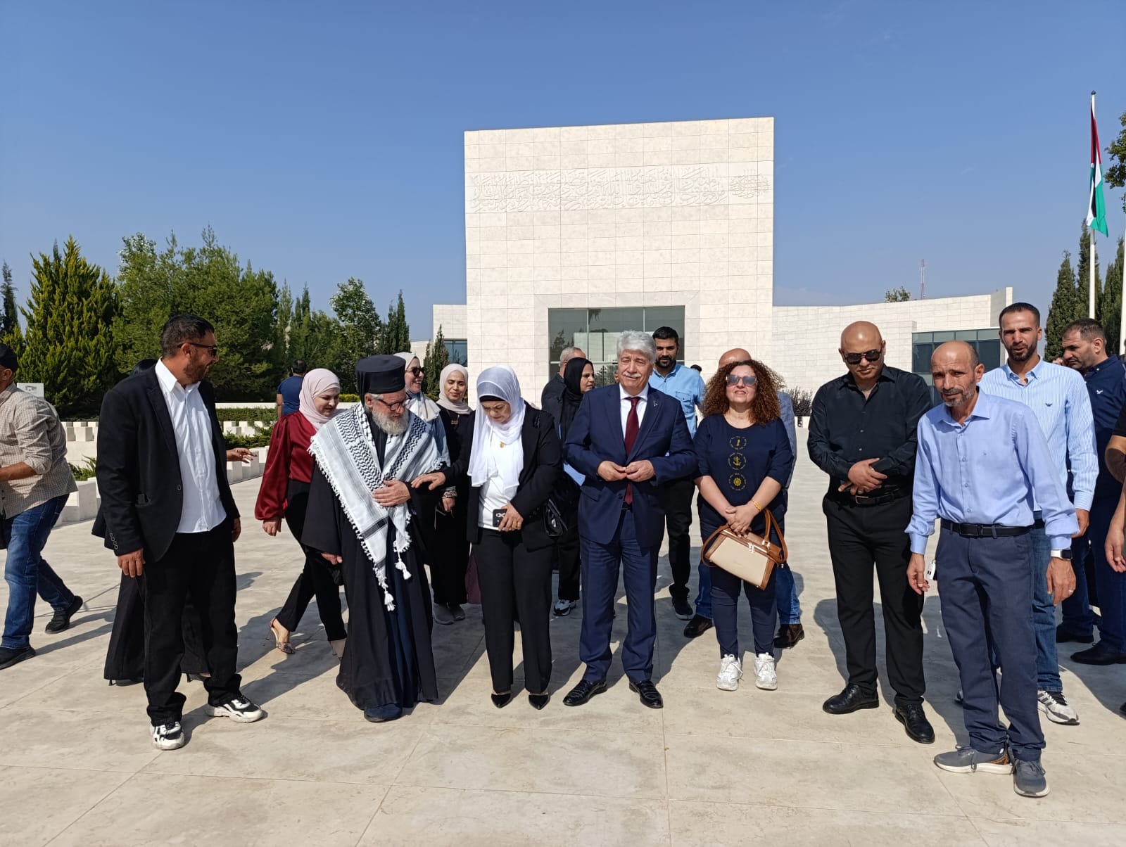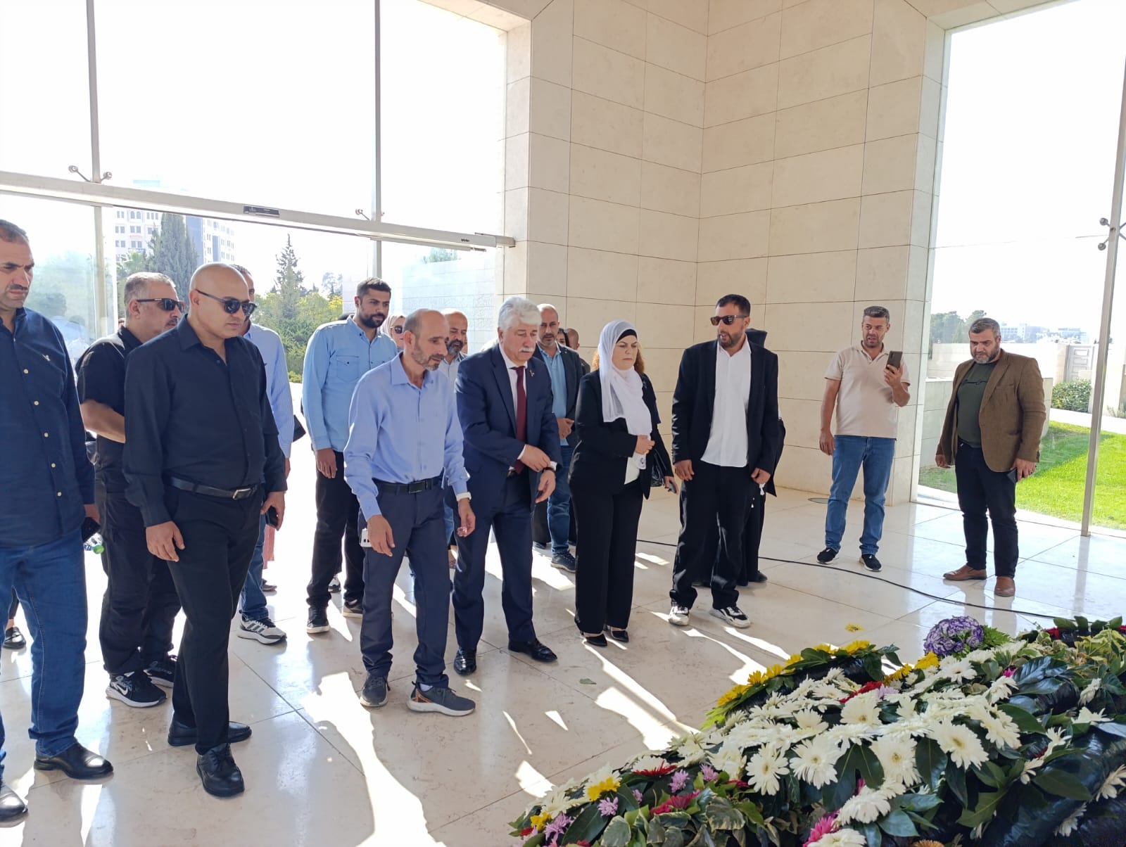 رام الله / وضع عضو اللجنة التنفيذية لمنظمة التحرير الفلسطينية الأمين العام لجبهة النضال الشعبي الفلسطيني د. احمد مجدلاني ، ووفدا ضم عضو المكتب السياسي للجبهة لؤي الفاخوري، واعضاء اللجنة المركزية صهيب عطايا ونصرة القبلاني، واعضاء قيادة الجبهة فرع رام الله والييرة، اليوم الثلاثاء، اكليلا من الزهور على ضريح الرئيس الشهيد ياسر عرفات، لمناسبة الذكرى الـ٢١ لاستشهاده. وقرؤا ، الفاتحة على روح الشهيد عرفات.