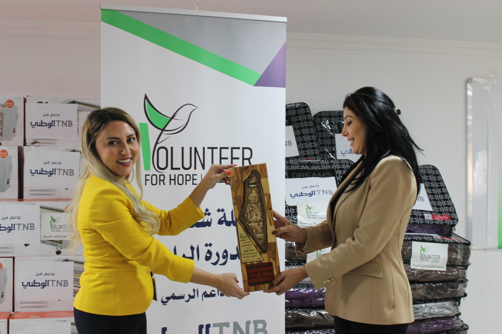 وكرمت ابو لبن البنك الوطني ممثلا بالسيدة عناني مديرة العلاقات العامة، لدوره واسهامه في دعم الجمعية في تنفيذ الحملة، حيث كان البنك الداعم الرئيس للحملة.