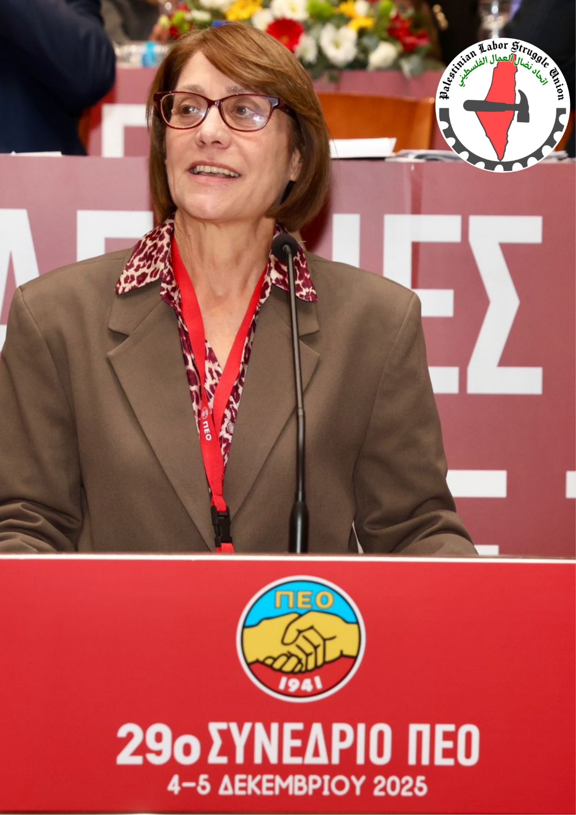 رام الله / يتقدّم اتحادنضال العمال الفلسطيني بأحرّ التهاني والتبريكات إلى الرفيقة سوتيرولا شارالامبوس بمناسبة إعادة انتخابها أميناً عاماً لاتحاد نقابات عمال قبرص (PEO)، تقديراً لثقة العمال القبارصة وتجديد التفويض النقابي لها لمواصلة دورها النضالي في الدفاع عن حقوق الطبقة العاملة وتعزيز الحريات النقابية.