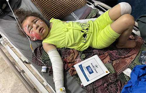 وقال والده: “أول مرة بنزور هذه العيادة، كان ابني يتعالج في مستشفى الشفاء لكن جروحه في تفاقم ولم تلتئم بعد”، مشيراً إلى أن أحدهم نصحه بزيارة عيادة منظمة أطباء بلا حدود.