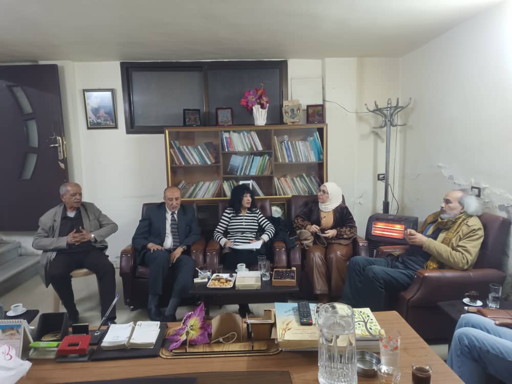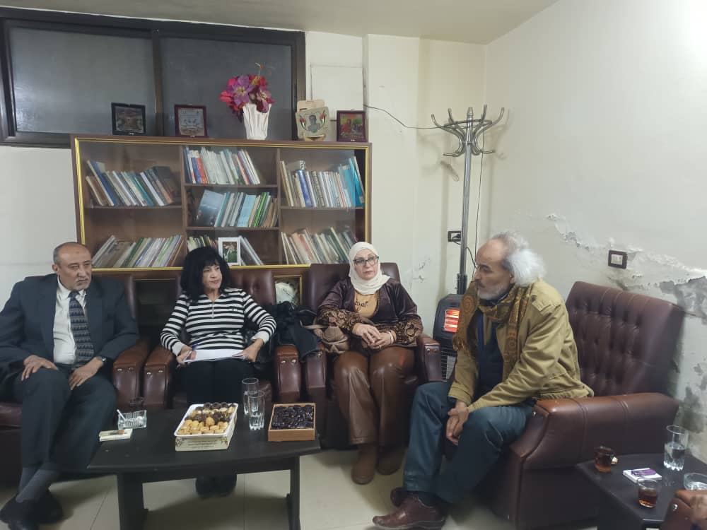 وتأتي هذه الزيارة ضمن الزيارات التي تقوم بها أمانة الاتحاد العام للأدباء والكتاب الفلسطينيين-فرع سوريا-حيث تطرق الجانبين الى مناقشة أمور الاتحاد والرؤية المستقبلية والتعاون الوثيق بين الاتحاد وجبهة النضال الشعبي الفلسطيني .