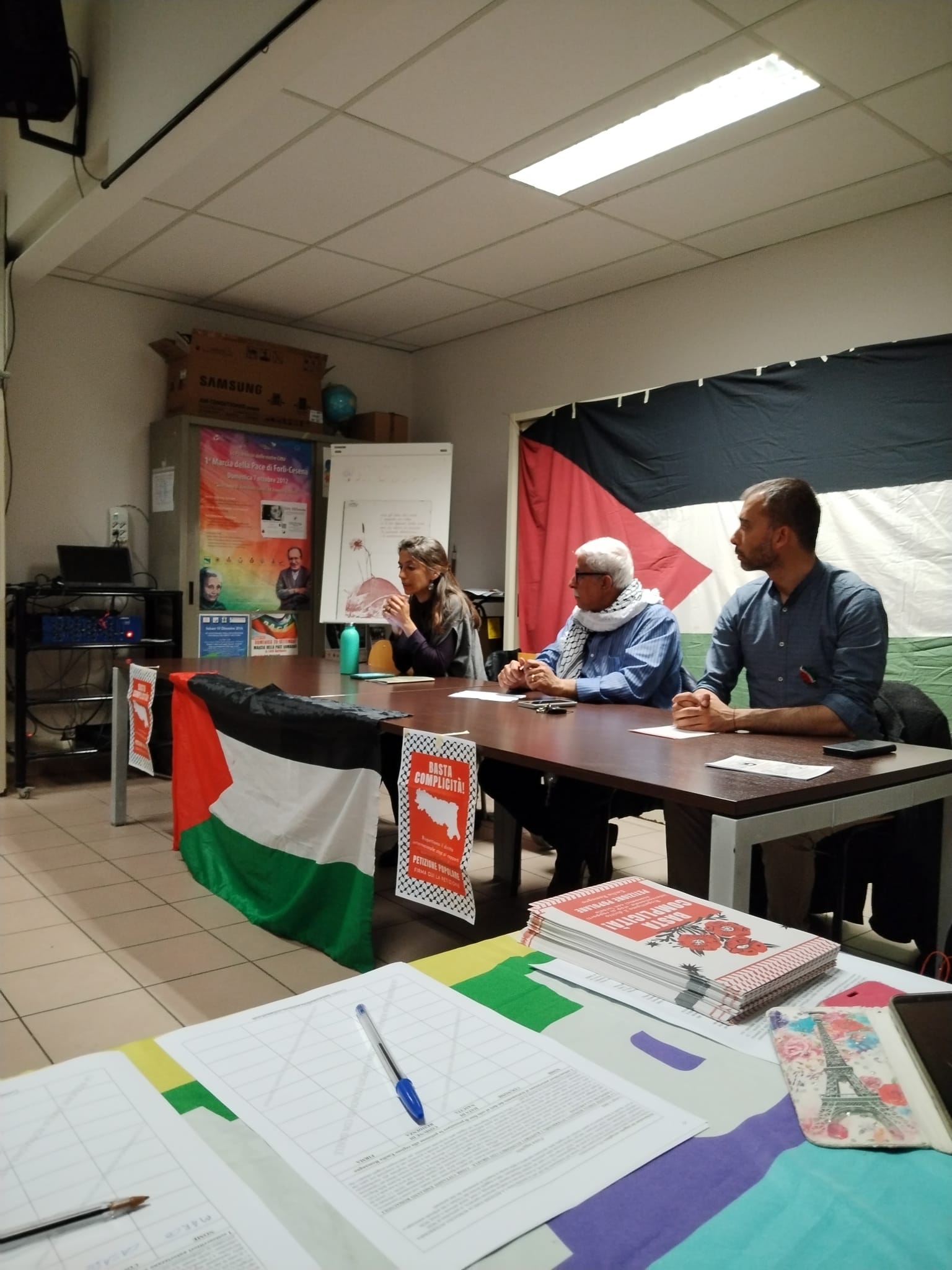 ومن جانبه قدم الناشط الحقوقي جان لوقا بكاريني المتخصص في حملة تجميع تواقيع المواطنين والتي تحمل اسم ” يكفي تطواطئ” لتقديمها لرئاسة اقليم اميليا رومانيا ، حيث تطالب بتجميد ووقف جميع العلاقات التجارية والتعاونية مع دولة الاحتلال .