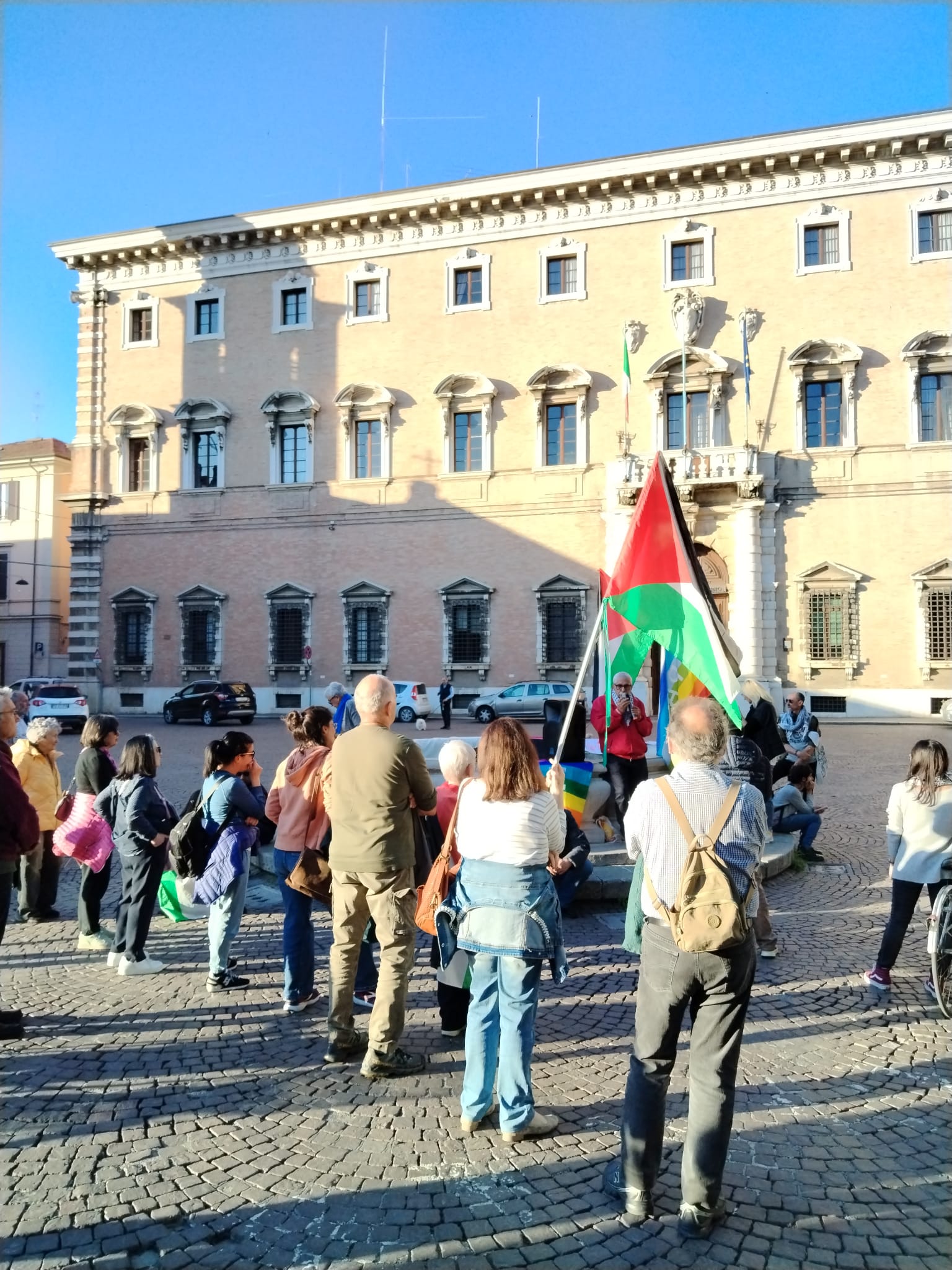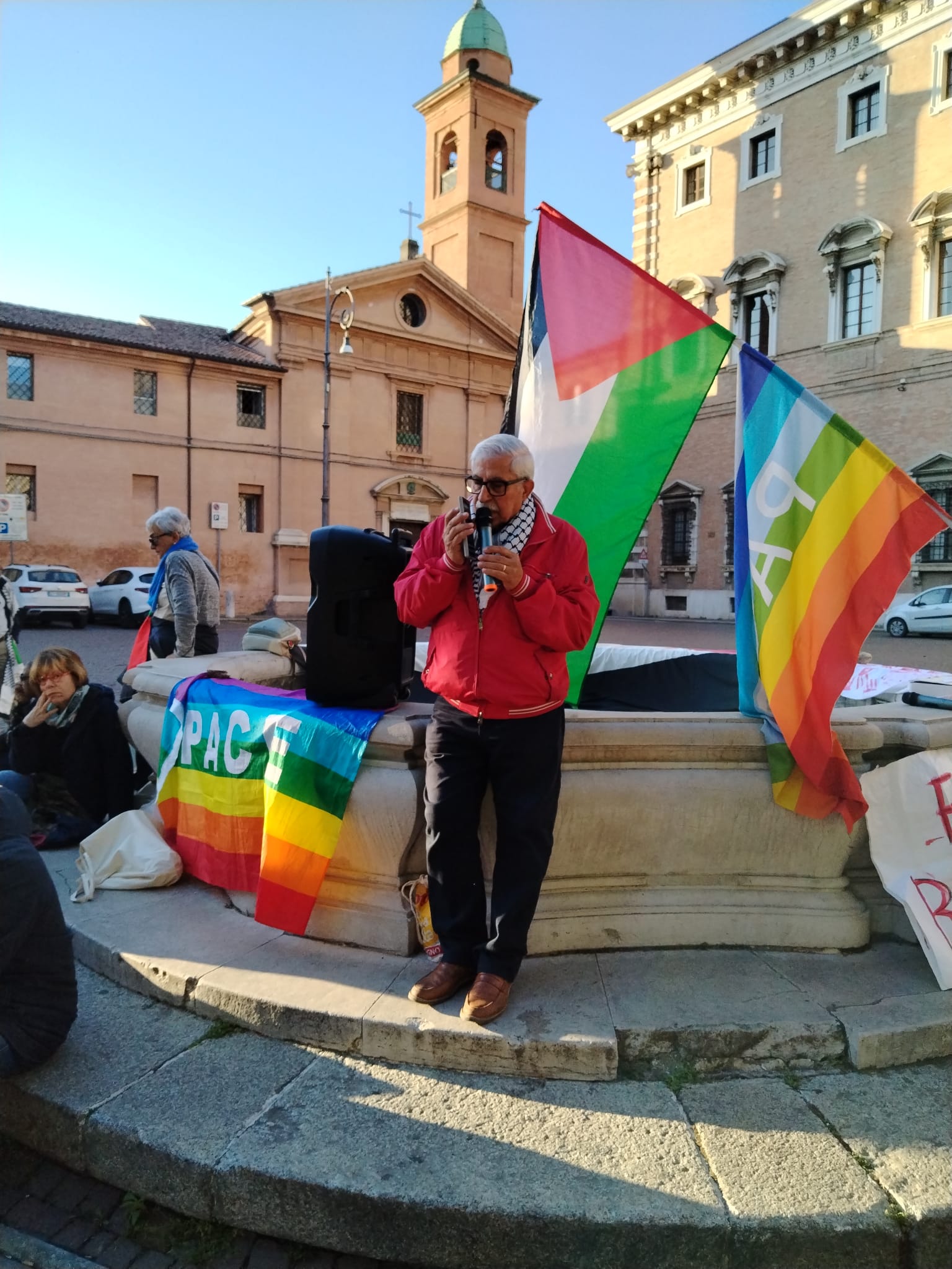 في البداية شكر شيلو المشاركين والمتضامنين الايطاليين على وقفتهم وتضامنهم مع الشعب الفلسطيني، مذكرا الحضور بالعلاقة الوثيقة التي تربط الشعبين الايطالي والفلسطيني القائمة على التضامن والاخوة والصداقة .
