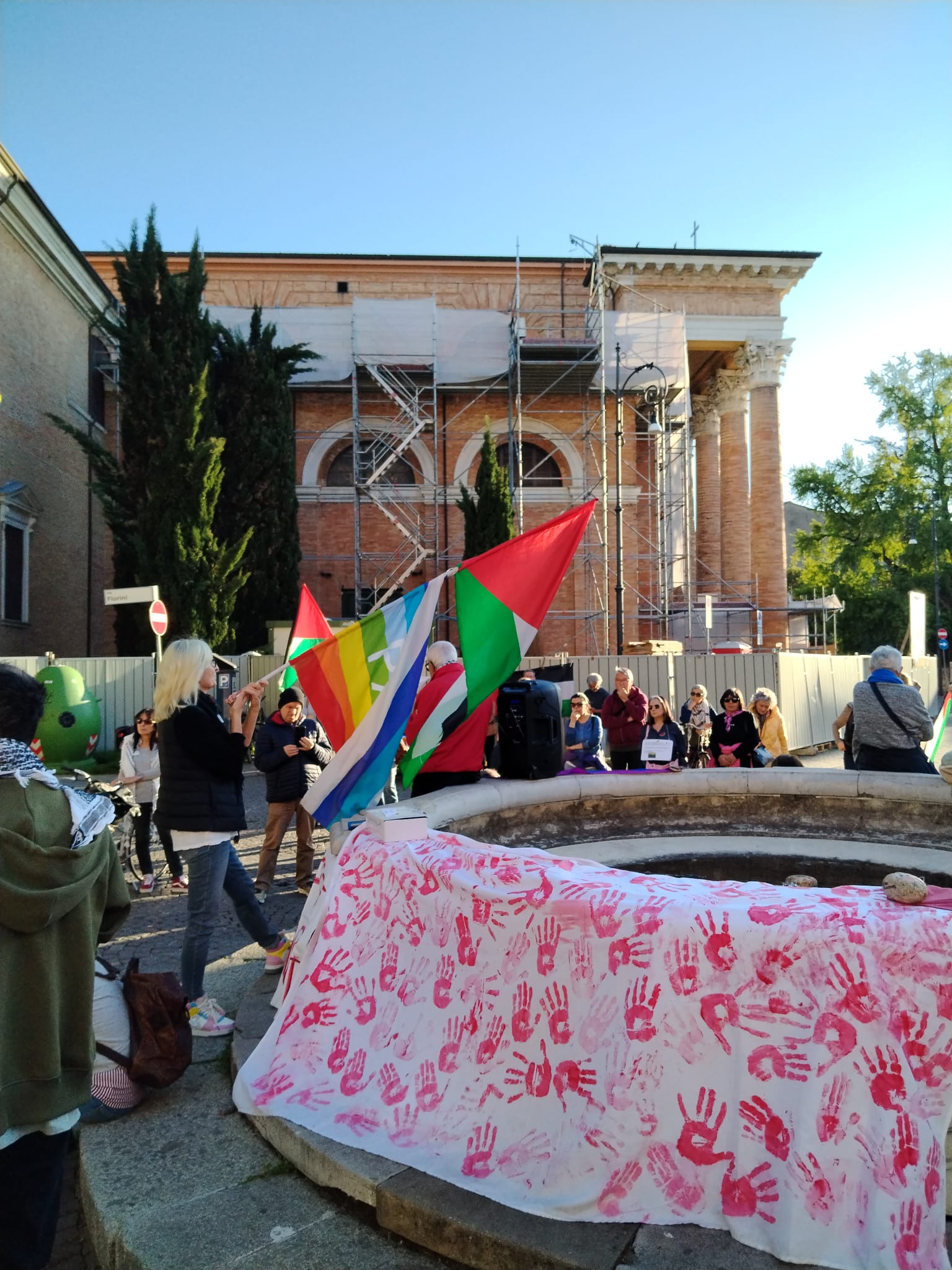 رام الله / نظمت منظمة أيادي حمراء ضد العنصرية في مدينة فورلي الايطالية وقفة تضامنية مع الشعب الفلسطني وضد الاحتلال والعنصرية.